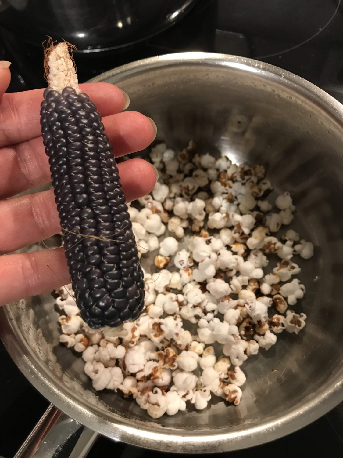 Das Besondere beim Popcorn Mais ist die Schale der Körner. Diese ist hart, aber dünn. Bei großer Hitze dehnt sich im Inneren des Kernes die verbliebene Restfeuchte explosionsartig aus. Das Weiße des Korn platzt heraus. Eben Popp Körner.