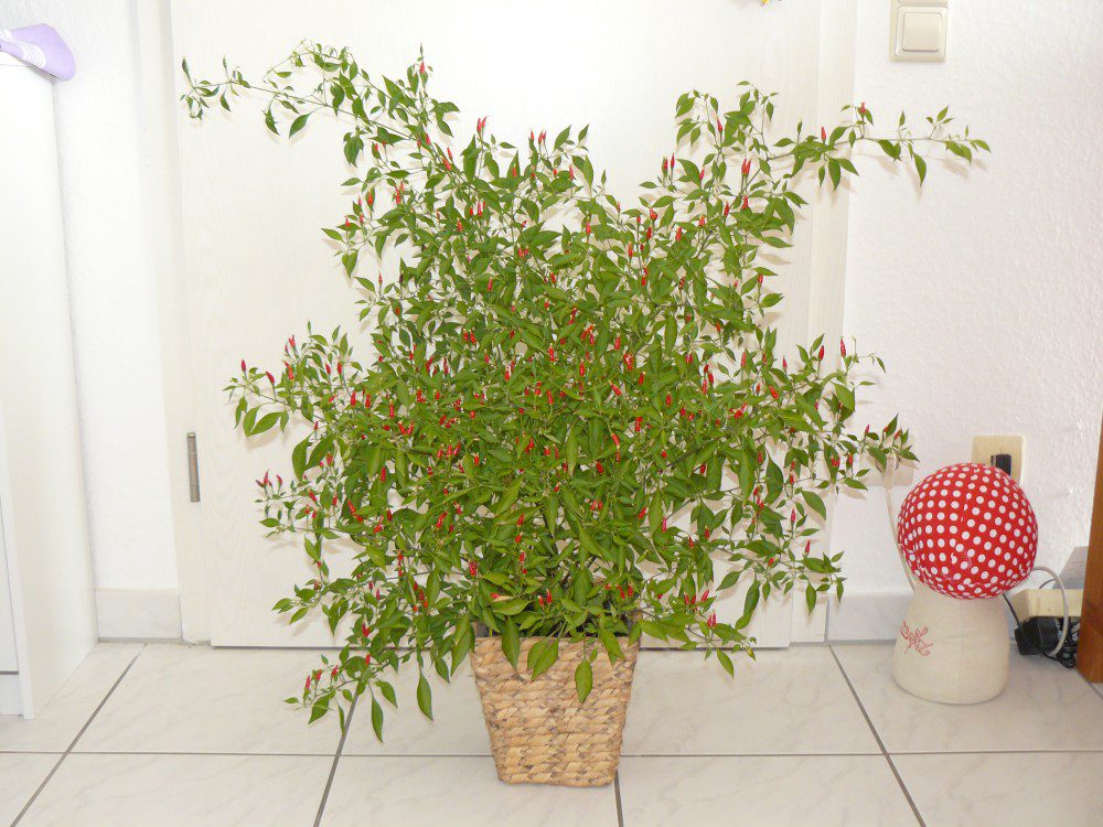 Die Samen werden bereits im Januar vorgezogen, da die Setzlinge länger brauchen als etwa Tomaten um eine ausreichende Größe zum Eintopfen zu erlangen. Mein Freund setzt bei der Anzucht auf feuchte Küchentücher (bitte ohne Aufdruck) unter Anzuchtlampen. Seine Pflanzen werden im Sommer auch wirklich stattlich. Mir ist das Vorziehen in der Erde lieber und bei mir genügt ein Fenster gen Südosten. Die Ernte reicht dann immer noch für 2 Liter Chilisoße, Chilis für die Pfeffermühle und natürlich Frische rund ums Jahr.
