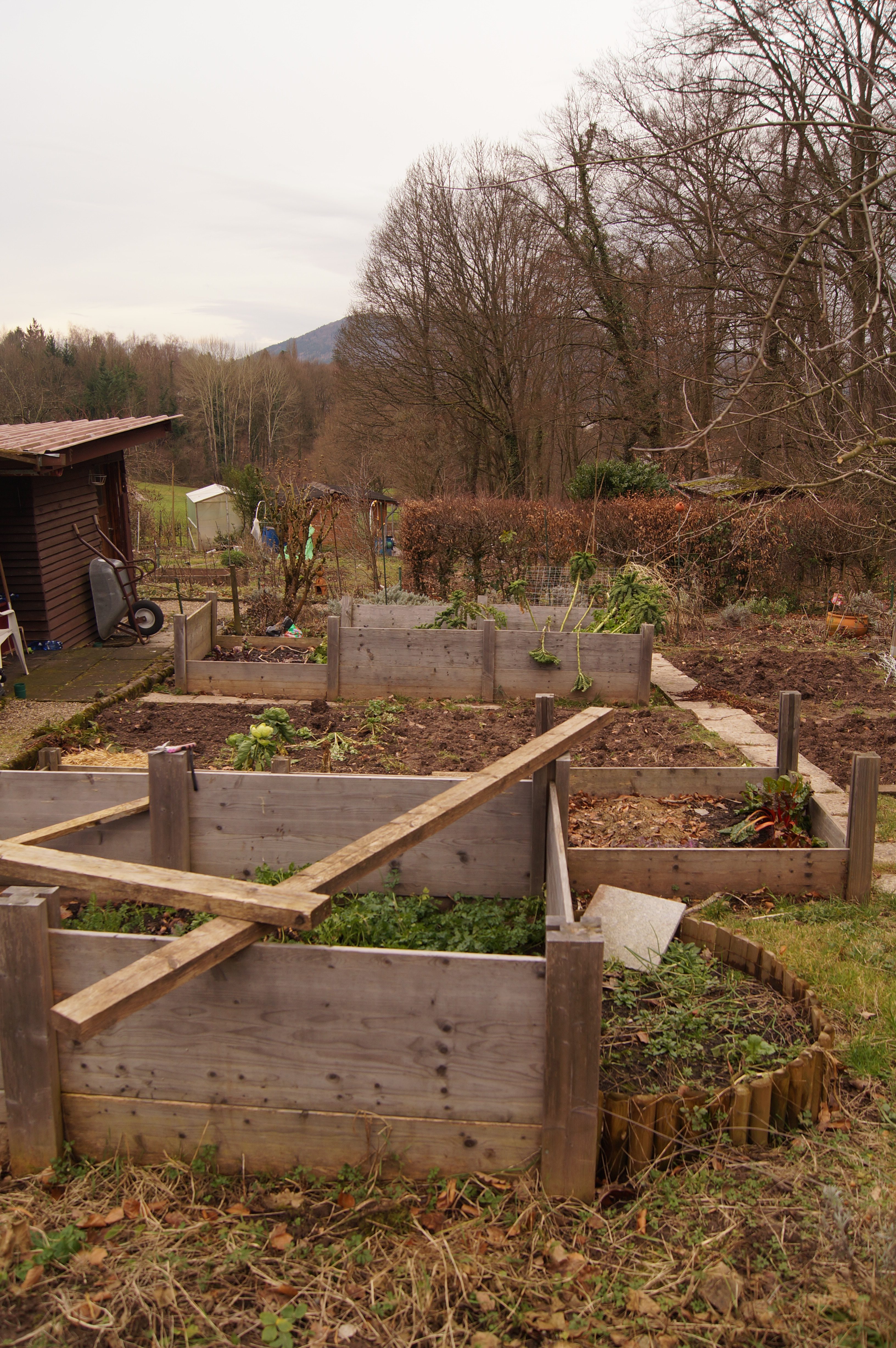 Die Beete befüllt habe ich von unten nach oben mit Zweigen von unseren Apfelbäumen, darüber trockenes Laub und Garten“abfälle“, wie Gras und Unkraut. Allerdings kein Wurzelunkraut! Darüber Erde aus dem Garten und oben darauf neu gekaufte Gartenerde. Das hat den Vorteil, dass Unkrautsamen noch nicht vorhanden sind und das Unkraut jäten sich im ersten Jahr in Grenzen hält. Es spart viel Arbeit. Im Laufe eines Jahres werden immer wieder Grünschnitt aufgebracht und jedes Jahr im Frühjahr mit frischer Erde weiter aufgefüllt. Eine weitere Düngung war bisher nicht nötig. An das Ende der Nutzungsdauer der Erde bin ich bis jetzt gestoßen. Aber ich achte auf die Fruchtfolge im Beet, also von Starkzehrer zu Schwachzehrer.