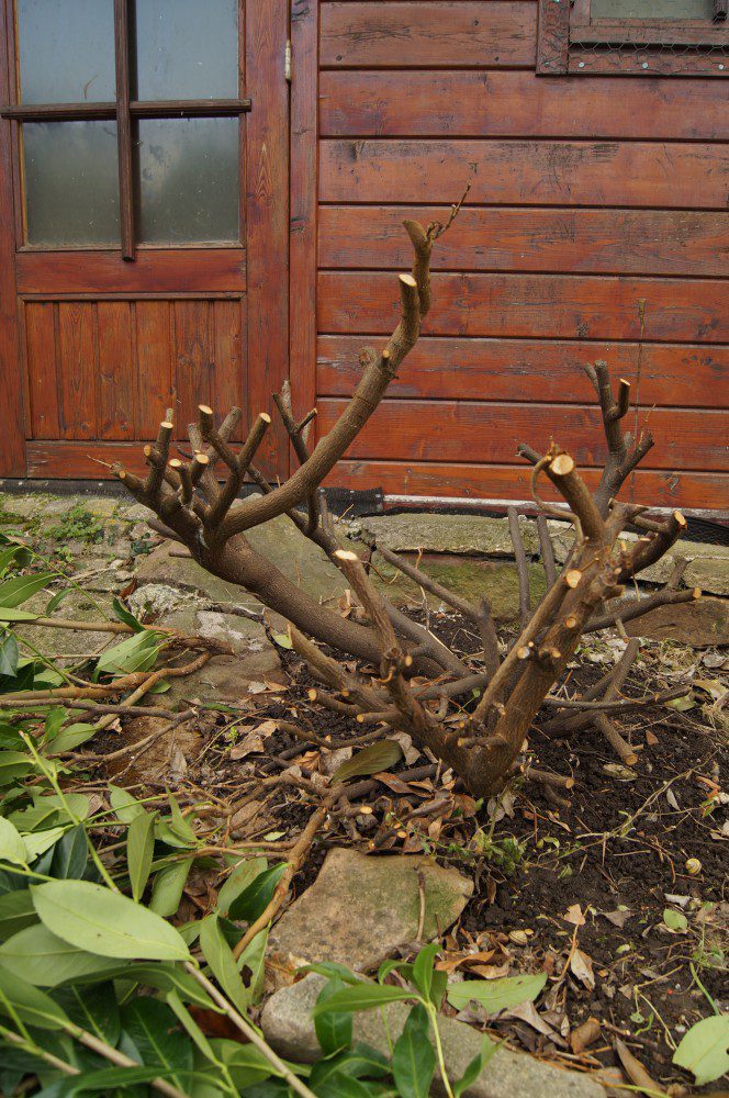 Gestern habe mit den anstehend Schnittarbeiten im Hausgarten angefangen. Der Hausgarten biete vor und hinter dem Haus unter vielem anderen 8 Lorbeerbüsche. Als Sichtschutz geduldet, aber als Schmuckwerk absolut nicht meins. Deshalbt musste schon mal der Busch vor der Hütte einen Radikalschnitt erdulden. Ich werde ihn nicht rausreißen, aber für dieses Jahr habe ich ihm alles Grün genommen. Nicht nachmachen, ist mein Geschmack.