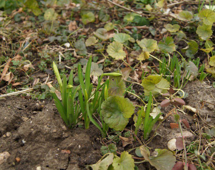Das ist nur eine mittelfristige Lösung für die wahrscheinlich nächsten zwei Jahre. Eigentlich finde ich die Kombi Unkrautvlies mit Rindenmulch wirklich langweilig und nur bedingt Bienenfreundlich. Aber es ist die einzig wirksame Methode Giersch und Co. auf Dauer zu entfernen ohne einem 50 cm Erdaushub auf der gesamten Fläche :-). Die im Boden befindlichen Zwiebeln der Frühlingsblüher habe ich zuvor in Sicherheit gebracht. Sie bekommen ein kleines Gastspiel in den Rollcontainern vor dem Haus, bevor sie dann in ein anderes Beet eingepflanzt werden. Allerdings nur nach vorheriger gründlicher Entfernung sämtlicher Rizomen der verschiedensten Unkräuter.