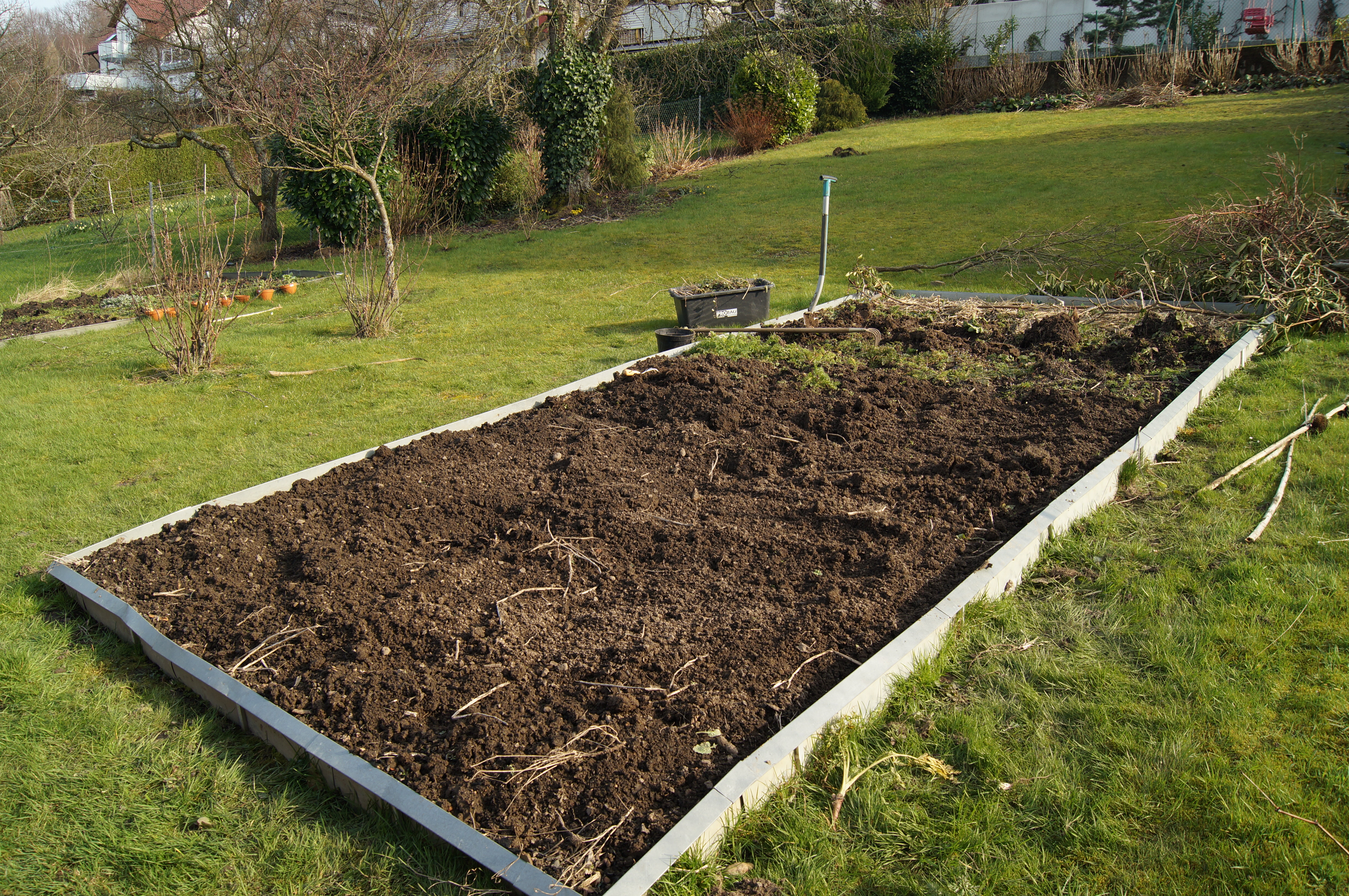 Endlich scheint mal wieder die Sonne, also rauß in den Garten. Es sind noch viele Beete vorzubereiten. Eigentlich ist der Boden noch zu nass. Aber ich befürchte, wenn ich noch länger warte vermehrt sich die Vogelmiere wieder hemmungslos. Um ein Beet wieder richtig Unkrautfrei zu bekommen gibt es nur eines: Jäten, jäten, jäten, bis man weint. :-). Leider habe ich mir in den letzten Jahren unwissentlich eine wahre Unkrautbrut aufgeladen. Bei der ortsansässigen Kompostanlage gibt es Komposterde und Gartenerde zu kaufen. Was ich nicht wusste: Dort wird der Kompost nicht zusätzlich erhitzt, viel zu viele der Samen bleiben keimfähig und gehen fleißig auf. Eine Woche lang nicht gejätet – oder auch mal vier wie im letzten Jahr durch den Hauskauf – und schon stehst du da und führst einen schier aussichtslosen Kampf.