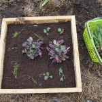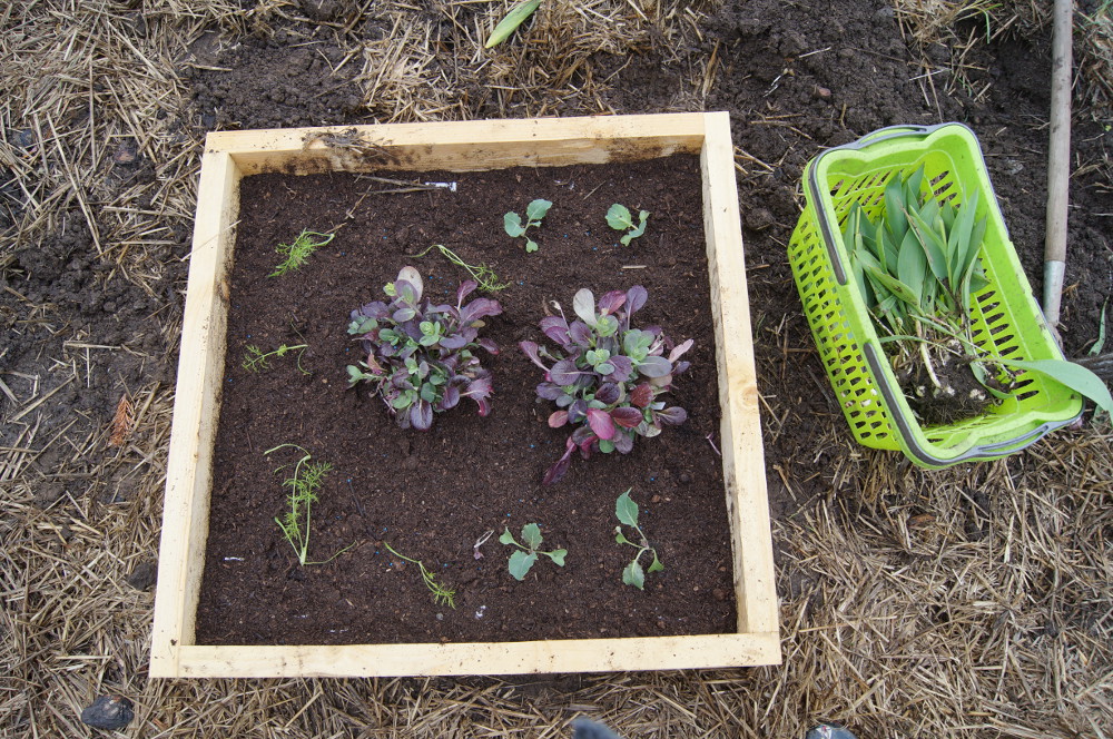Im hinteren Beet sind jetzt roter Pok Choi, Zierblumenkohl und Fenchel eingepflanzt. All die hier aufgeführten Pflänzchen habe ich aber nicht selber gezogen. Sie stammen zum Großteil von einem tollen Pflanzmarkt für Gemüse. Das „Standard“ Gemüse stammt von einer ortsansässigen Gärtnerei. Gerade der Fenchel und Sellerie scheinen wirklich etwas heikel zu sein in der Anzucht, da muss ich mich erst noch hinein fuchsen. Von den vorgezogenen Pflänzchen haben sich gerade mal zwei auf den Weg gemacht zu wachsen.