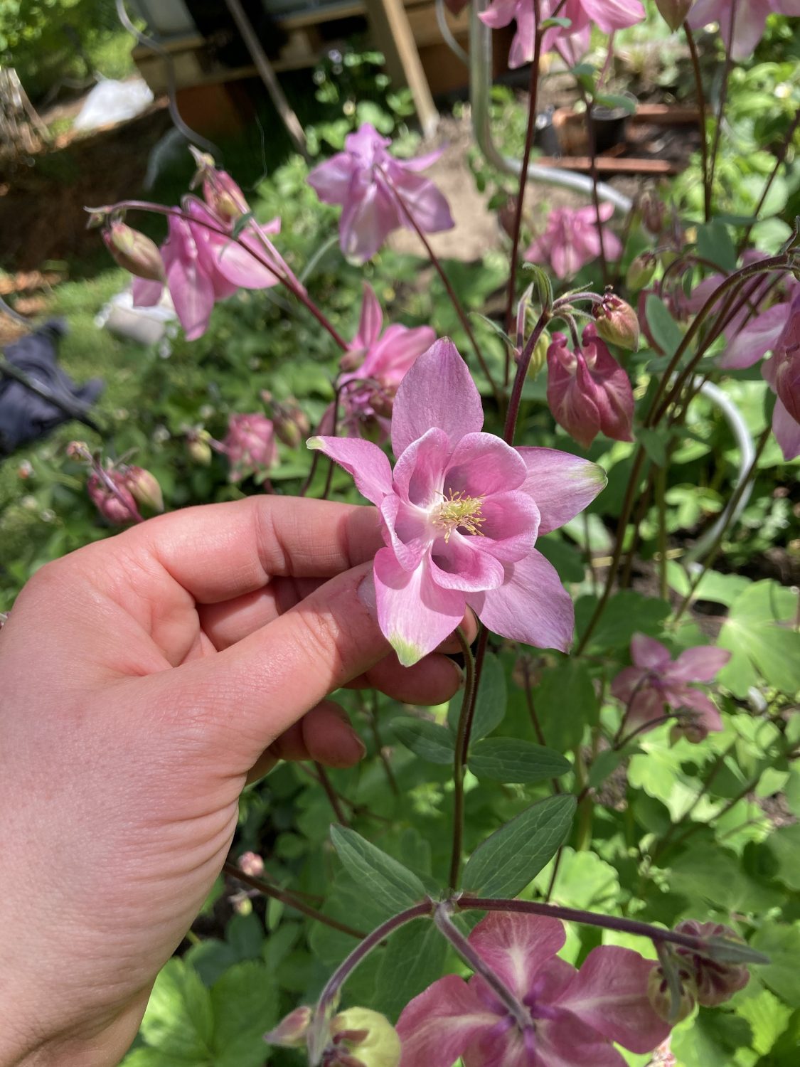Trotzdem gerate ich inzwischen regelrecht in Verzückung, wenn ich bei der Gartenarbeit eine kleine Akeleiwurzel ausgrabe. Sieht sie nicht wunderhübsch aus, wie sich die kleinen Blätter langsam entfalten? Die wird gleich an anderer Stelle wieder eingegraben.