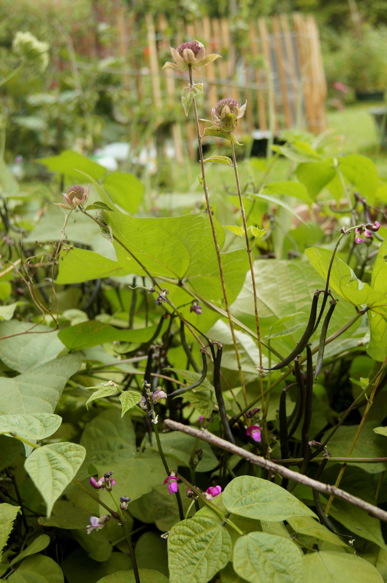 Wie bei all unseren Gemüsefavoriten säen wir alle paar Wochen ein weitere Charge aus. Erst letzten Sonntag hat meine kleine Tochter nochmal drei Reihen ausgesät auf der Fläche wo zuvor die Erbsen waren. Buschbohnen sind wirklich „kinderleicht“. Hübsch sind sie noch dazu. Im Beet an der Terasse übernehmen sie auch noch einen dekorativen Part. Mit den zarten Blüten, den lilalen Schoten und den sattgrünen Blättern bieten sie einen ansprechenden Rahmen für die Rosenmelisse. Auch wenn die Rosenmelisse auf diesem Foto leider schon ihr schönes Pink verloren hat.