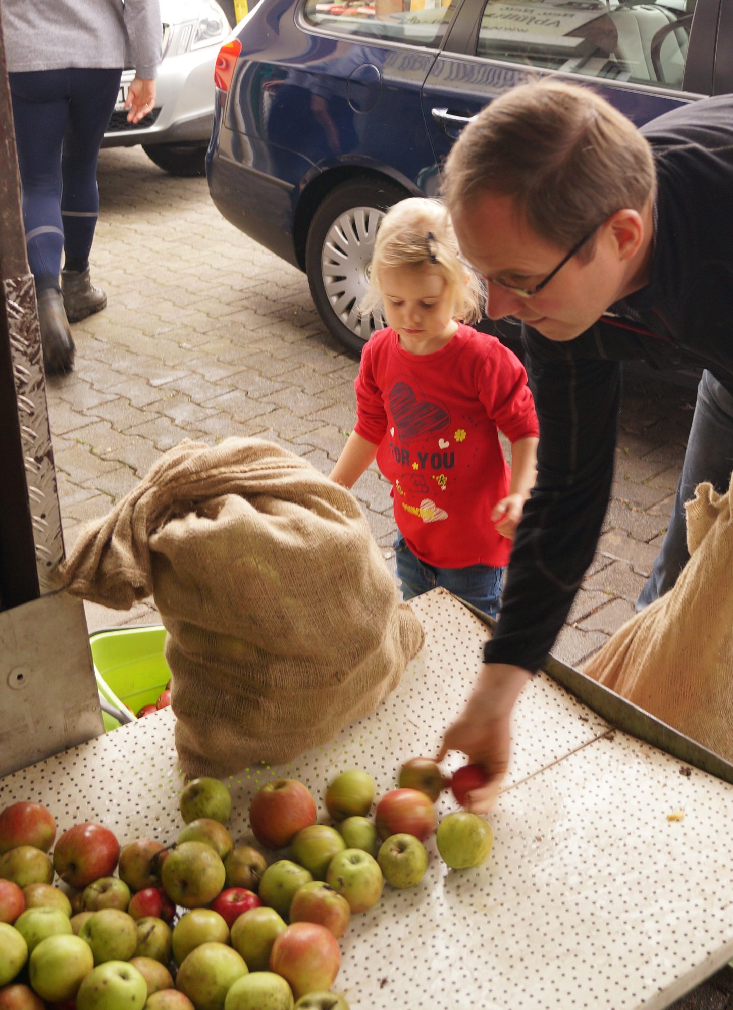 Mir gefällt daran, dass wirklich nur unsere Äpfel zu unsererm Saft verarbeitet werden und nicht noch andere Äpfel darunter gemischt werden. So sind wir sicher, dass kein gespritzes Obst in unserem Saft verarbeitet wurde. Für unsere Tochter war es einfach spanndend, dabei zu sein. Von der Ernte, bis hin zum eigenen Apfelsaft.
