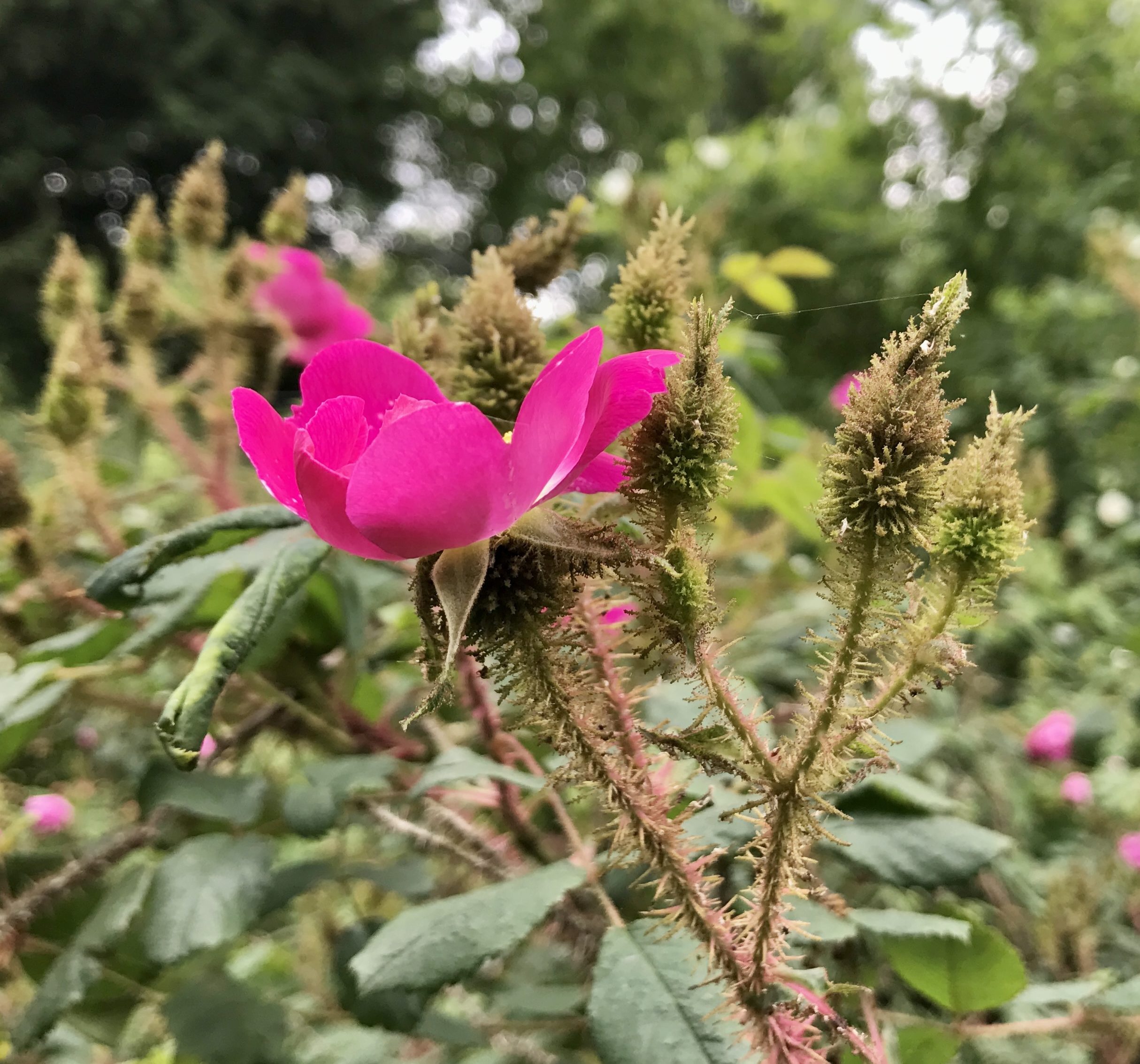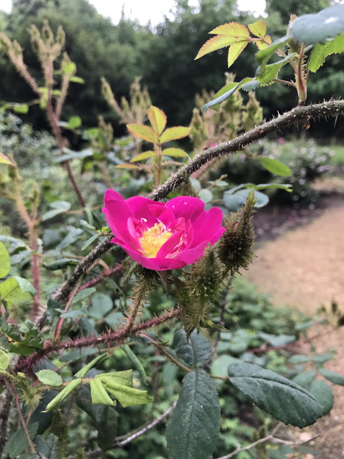 Juni 2017: 8 Monate später der zweite Besuch in Blickling Hall, diesmal mit der Familie. Im Juni stehen viele der Stauden in voller Blüte, wie Rosen und Pfingstrosen. Unter einem riesigen Mammutbaum finden sich Rosenraritäten, wie die Moosrose „Captain John Ingram“, eine Rosa muscosa. Mich faszinieren vor allem die Knospen, welche Namensgebend sind für diese Rosen Gruppe. Ob ich so eine Rose auch bei uns in Deutschland finde? Einfach schön.
