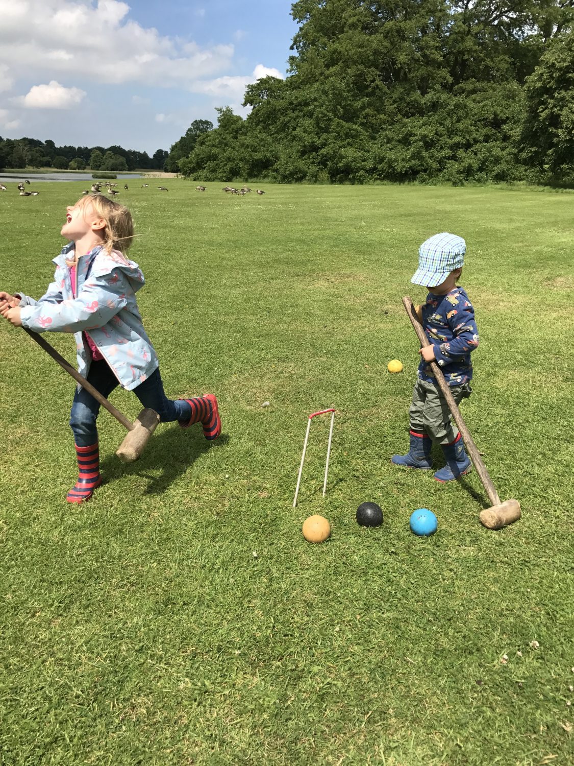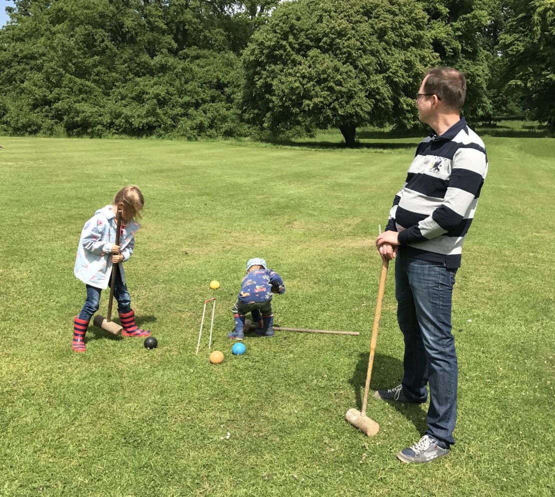 Der Park bietet auch Flächen zum Verweilen, entdecken und spielen. Wo kann man schon so herrschaftlich Crocket spielen auf einem englischen Rasen?
