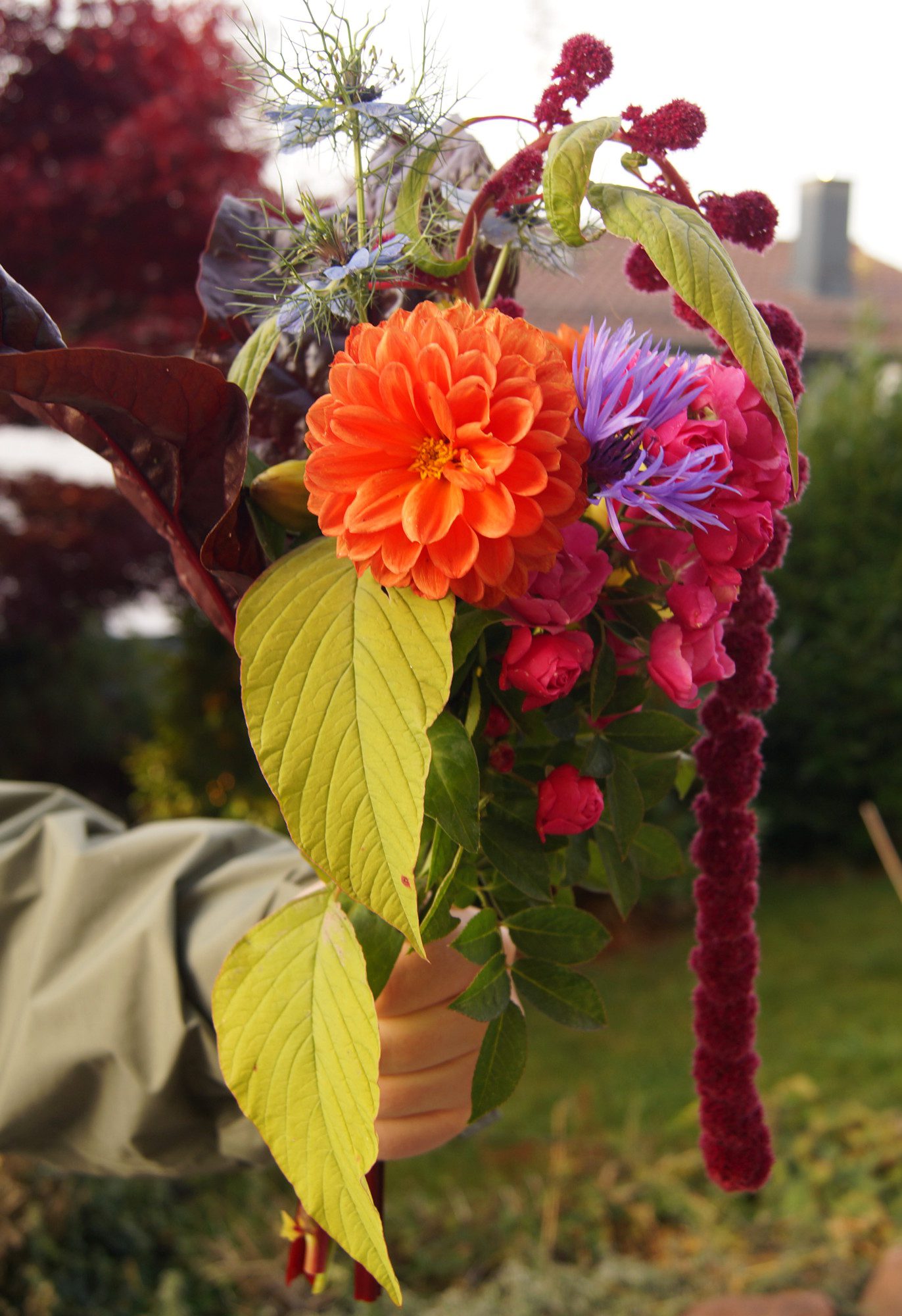 Heute an Allerheiligen geht man traditionell auf den Friedhof. Immer mit dabei ein Gruß an die Lieben. Wir haben heute anstatt der drögen Gebinde die es so zu kaufen gibt, einen farbenfrohen Blumenstrauß aus dem Garten mit dabei. Alle Blumen sind direkt vor der Abfahrt geschnitten worden und kommen auch wirklich aus unserem noch blühenden Garten. Die gefallen ihr bestimmt besser.