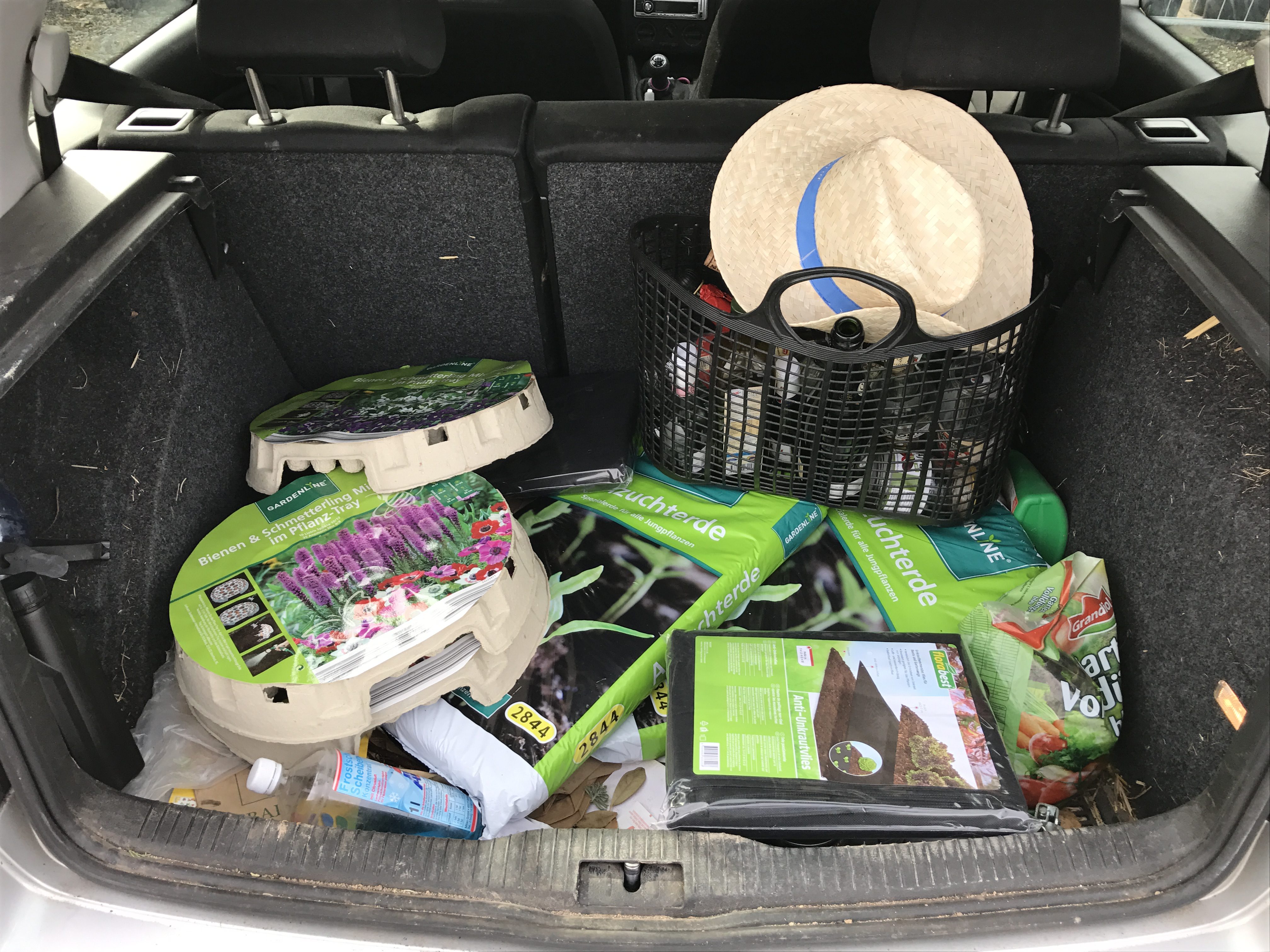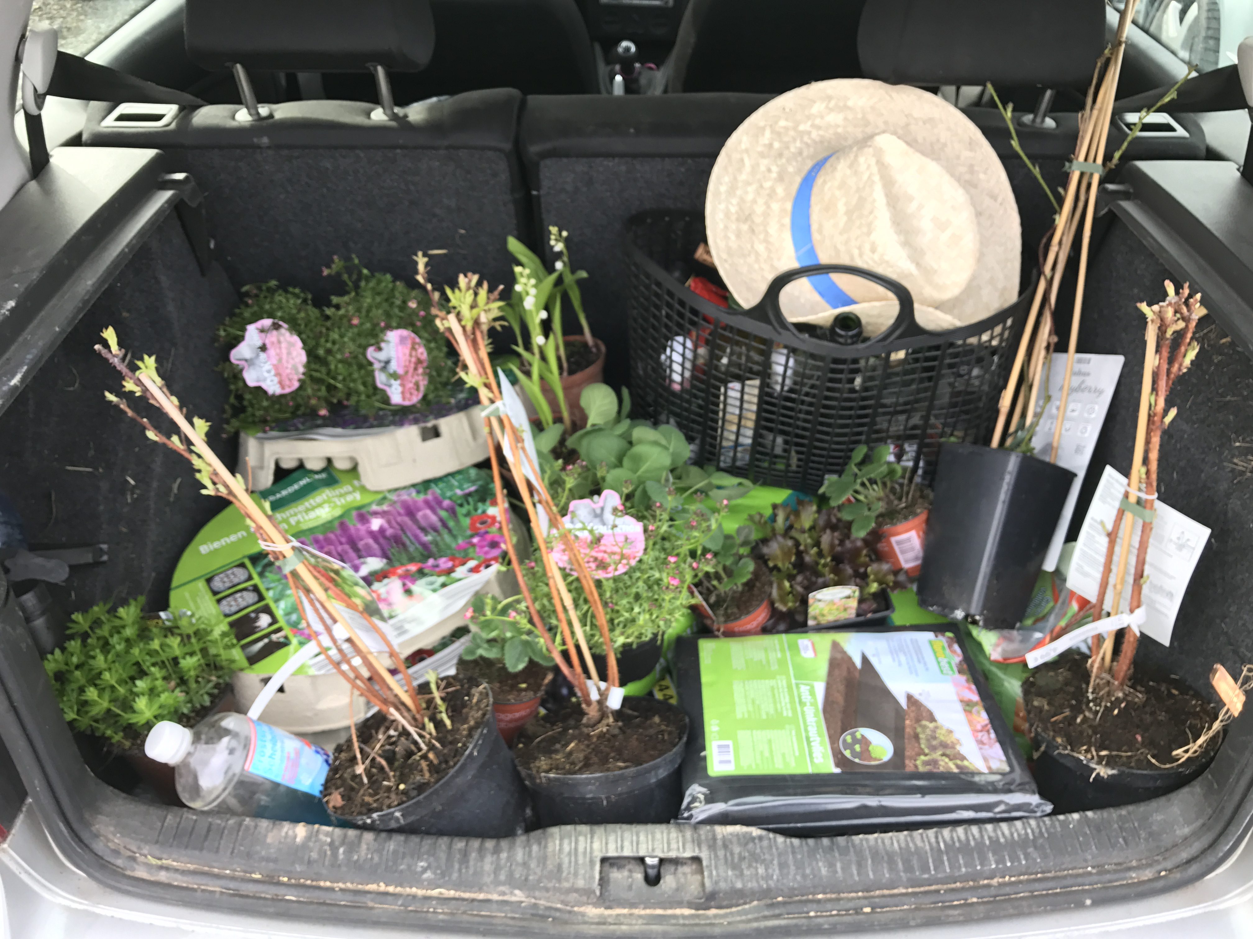 Noch eine Bemerkung am Rande: Mein Kofferraum schaut immer so aus. Nix gestellt, nur noch nicht im Garten „verbuddelt“. 🙂