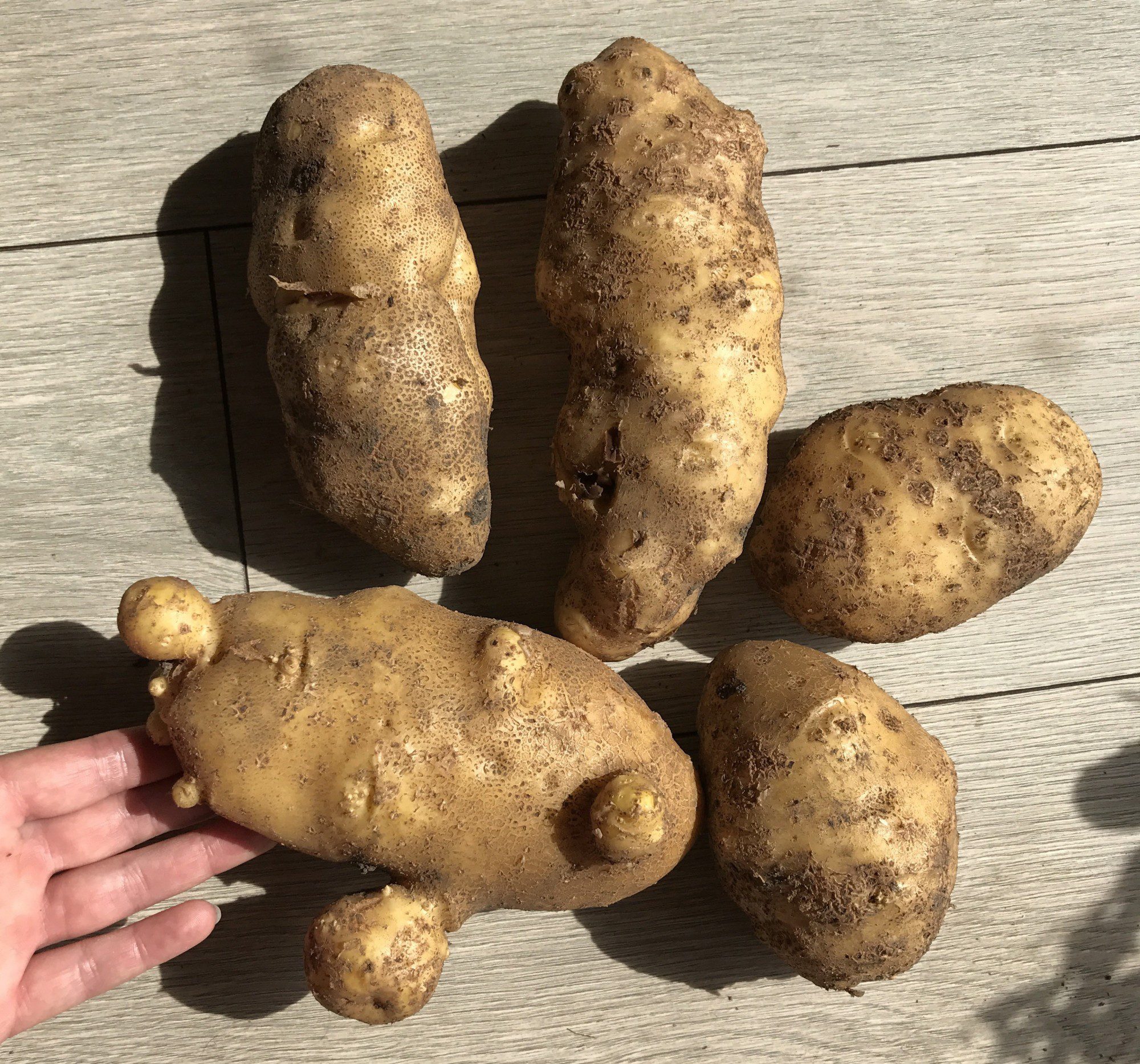 Am witzigsten sind die gigantischen Kartoffeln, die ich aus dem vordersten Beet ausgebuddelt habe. Witzig, weil ich das letzte Mal vor 4 Jahren Kartoffeln in diesem Hochbeet gesetzt habe. Jedes Jahr hat sich eine bzw. diesmal 4 kleine Kartoffeln im Boden versteckt und dann eine derart reiche Ernte fabriziert. Mich wundert selbst, warum die Kartoffeln in diesem Hochbeet derart groß werden. Denn sie werden nur hier so groß und schwer.