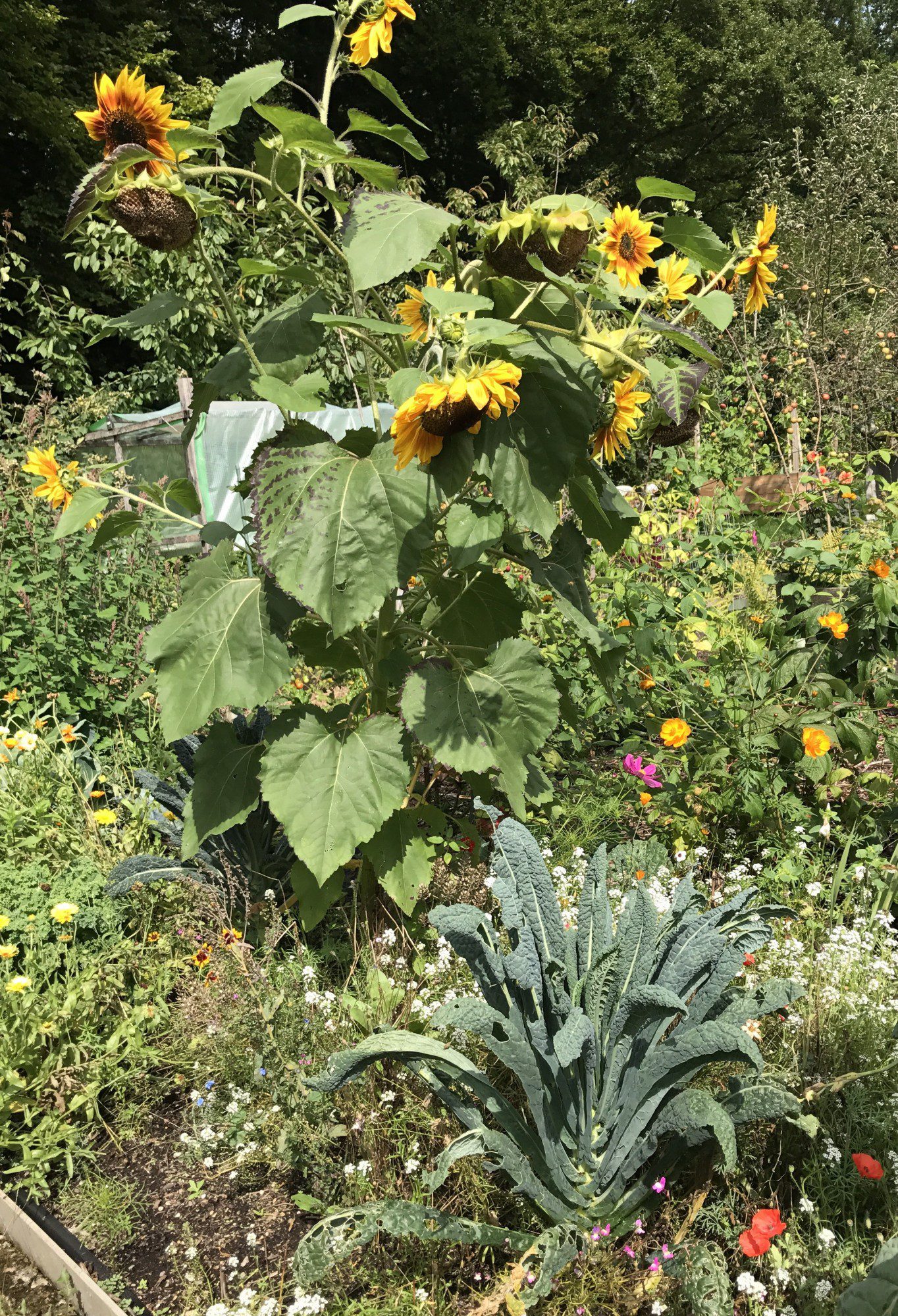Mit den verschiedenen Kohlsorten haben wir dieses Jahr wirklich Glück. Einzig der Wirsing schmeckt dem Kohlweißling zu gut. Dafür wird der Spitzkohl riesig, ebenso die Kohlrabis. Ein weiterer Hit sind die verschiedenen Grünkohlarten. Auch dieser Kohlart gefällt es im neuen Beet sehr gut. Der Kompost gibt ausreichend Nährstoffe und die Blumen halten die Schädlinge im ausreichenden Maße ab. Klar, es gibt immer noch Schneckenfraß. Aber wenn ich ehrlich bin, wüsste ich nicht, was wir mit all dem Kohl machen sollten, wenn nicht die Schnecken ihr Zehntel oder wohl eher Drittel holen würden ;-).