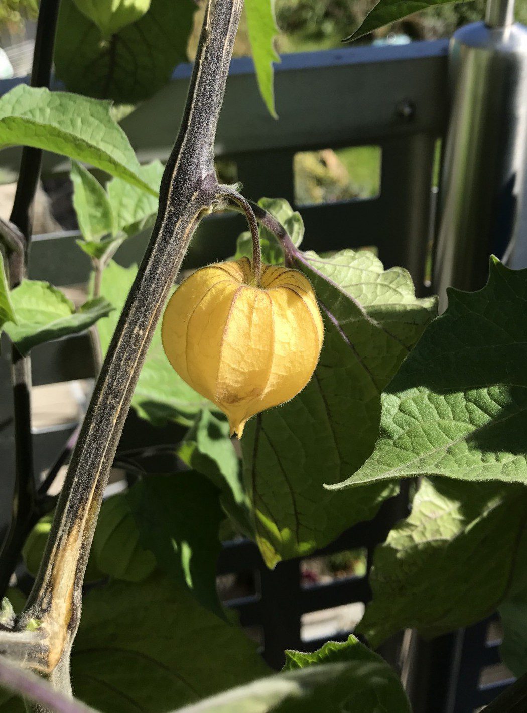 Im Frühjahr habe ich zwei verschiedene Sorten Physalis und auch Tomatillo vorgezogen. Alle gehören zur Gattung der Blasenkirsche. Sie sind entfernt verwandt mit den Tomaten und Kartoffeln. Mysteriöserweise hat sich aber bisher keine Tomatillo Pflanze gezeigt. Dafür kann ich auf der Terasse jetzt die verschiedenste Inka Beeren in insgesamt 5 Töpfen beernten. Diese Beerenart wird recht spät im Jahr reif. Dieses Jahr besonders spät, da der September ungewöhnlich kühl war. Sie vertragen allerdings auch leichte Fröste und können bis in den November hinein Früchte tragen. Für nächstes Jahr habe ich auch eine Auspflanzung im Kleingarten geplant, haben sich die Andenbeeren doch als bisher so herrlich unkompliziert gezeigt. Ich überlege auch, jeweils eine Pflanze pro Sorte im Haus zu überwintern. Dann bekomme ich vielleicht auch eine größere Menge zusammen für ein paar Gläschen Marmelade. Die Andenbeeren können genau wie die Fuchsien bei Temperaturen knapp über 0 Grad Celsius den Winter überstehen. Tja, ich bräuchte einfach doch ein eigenes Gewächshaus.