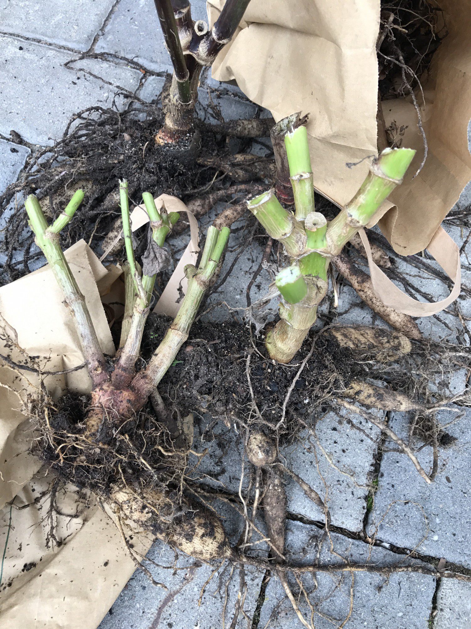 Mit den Dahlien bekommt man auch eine Anleitung zur Überwinterung ausgehändigt. Die Dahlien sollten aus dem Boden geholt werden, wenn der erste Frost droht. Dazu schneidet man die Pflanze eine Handbreit über der Erde ab und gräbt dann die Wurzel aus. Die Knollen müssen in einem Frostfreien Raum, der aber auch nicht zu warm ist, in einer Kiste mit Sand oder Erde überwinter. Die Knollen dürfen nicht zu feucht, aber auch nicht zu trocken stehen. Drohen sie Auszutrocknen, sollten sie mit einer Sprühflasche befeuchtet werden.
