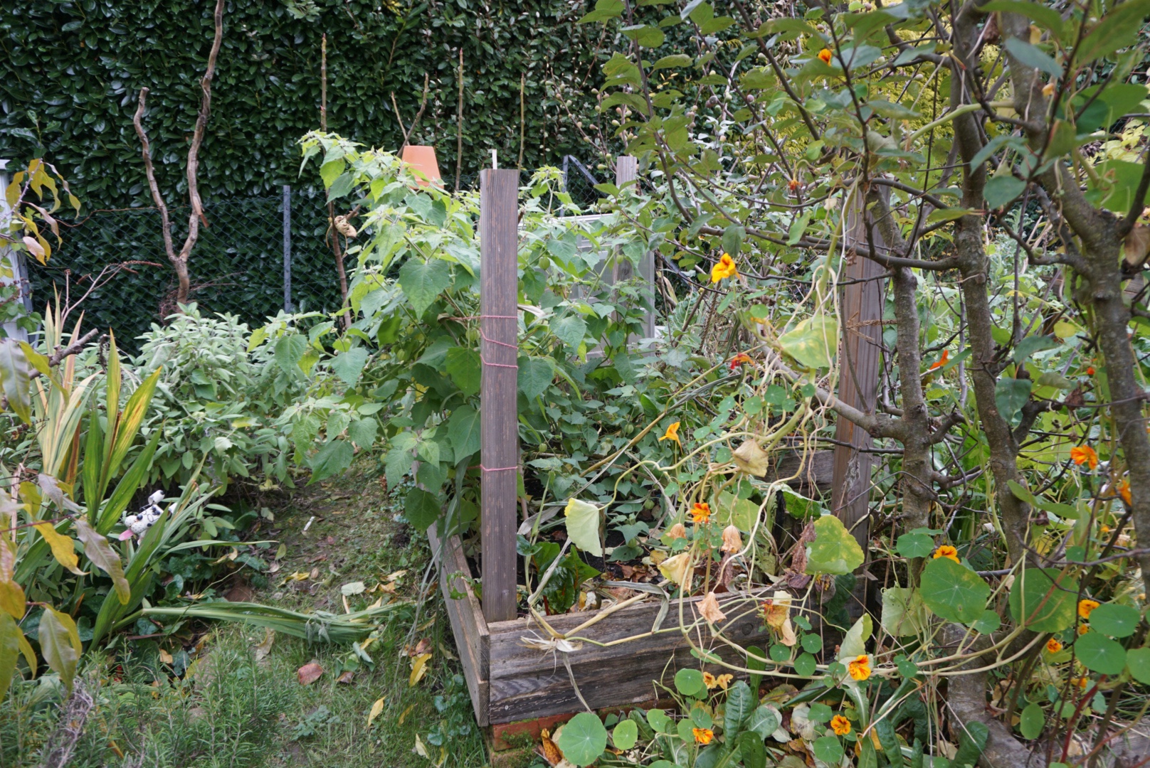 Tomatillo machen leider schon bei Temperaturen unter 10°C schlapp. Andenbeeren sind eigentlich mehrjährig und sie vertragen auch kühlere Temperaturen. Erst ausgedehnte Nachtfröste lassen sie absterben. Im Oktober 2017 habe ich daher 5 Pflanzen ins Haus geholt. Nach anfänglichen Problemen mit einer Blattlaus Invasion stehen sie inzwischen recht gut da. Die Blattläuse habe ich mit einer Jauche aus alten Rhabarberblätter in den Griff bekommen, die ich über mehrere Wochen gegossen habe. So konnte ich bis Weihnachten weiter die Lampions ernten.