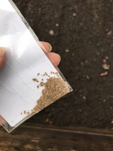 Um diese zu erreichen braucht es natürlich seine Zeit und da ich unbedingt die Ochsenherz Karotte ernten will, nehme ich in Kauf bei der Saat nass zu werden. Das große Hochbeet im GartenGarten ist hierfür der beste Ort. In knapp 2 cm tiefe Rillen finden die Samen hoffentlich ihre Bestimmung. Feucht genug ist es ja zur Zeit, also ist der größte Feind der Keimung – die Trockenheit – gerade kein Thema. Wirklich kalt es es auch nicht. Also wenn die Wühlmäuse nicht spitz kriegen, was für Leckereien sich hier hoffentlich bald breit machen, wird es klappen.