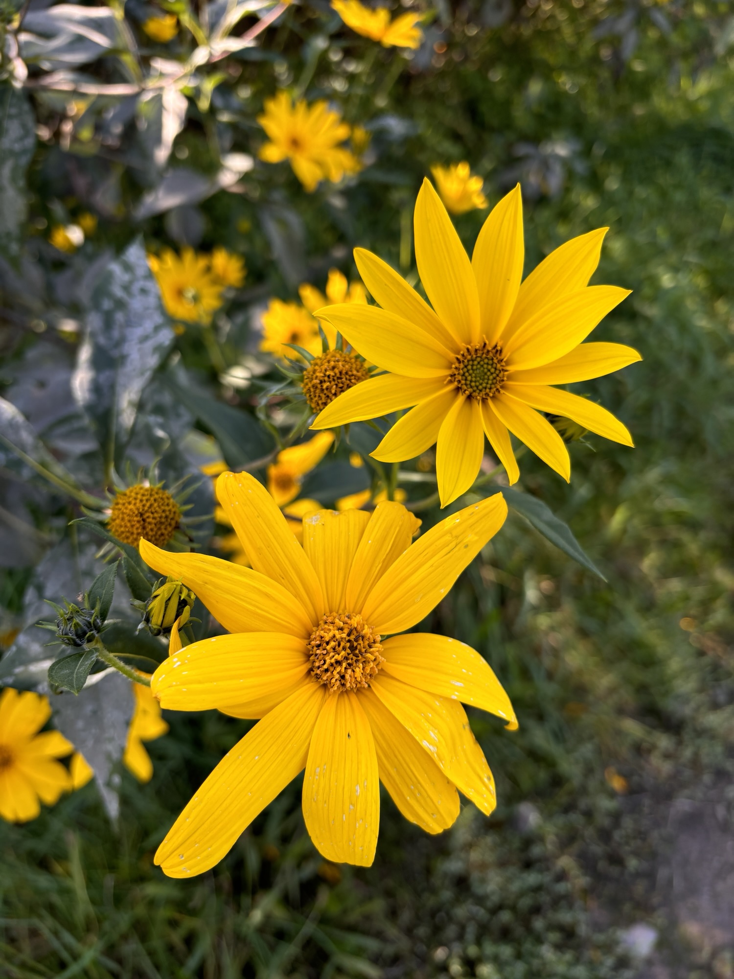 Warum eigentlich? Ehrlich gesagt haben wir die invasiven Eigenschaften dieser Pflanze noch nicht zu spüren bekommen. Es gibt hier so viele hungrige Wühlmäuse, die verhindern die Ausbreitung des Topinambur. Es gab sogar schon einen Sommer, in dem alle – wirklich alle – Wurzeln verschwunden waren. Komplett aufgefressen.