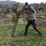 Alles steht gerade im Zeichen des Schnittes – Im Zeichen des Obstbaumschnittes. Wobei wir zuerst einmal radikal einen alten Pflaumenbaum fällen im GartenGarten. Dieser Baum hatte Anfangs noch einen Partner. Der musste aber bald von uns gefällt werden. Nun war der zweite und leider letzte Pflaumenbaum dran. Seit 2014 hatte er keine Früchte mehr getragen und er war bereits voll mit Baumpilzen.