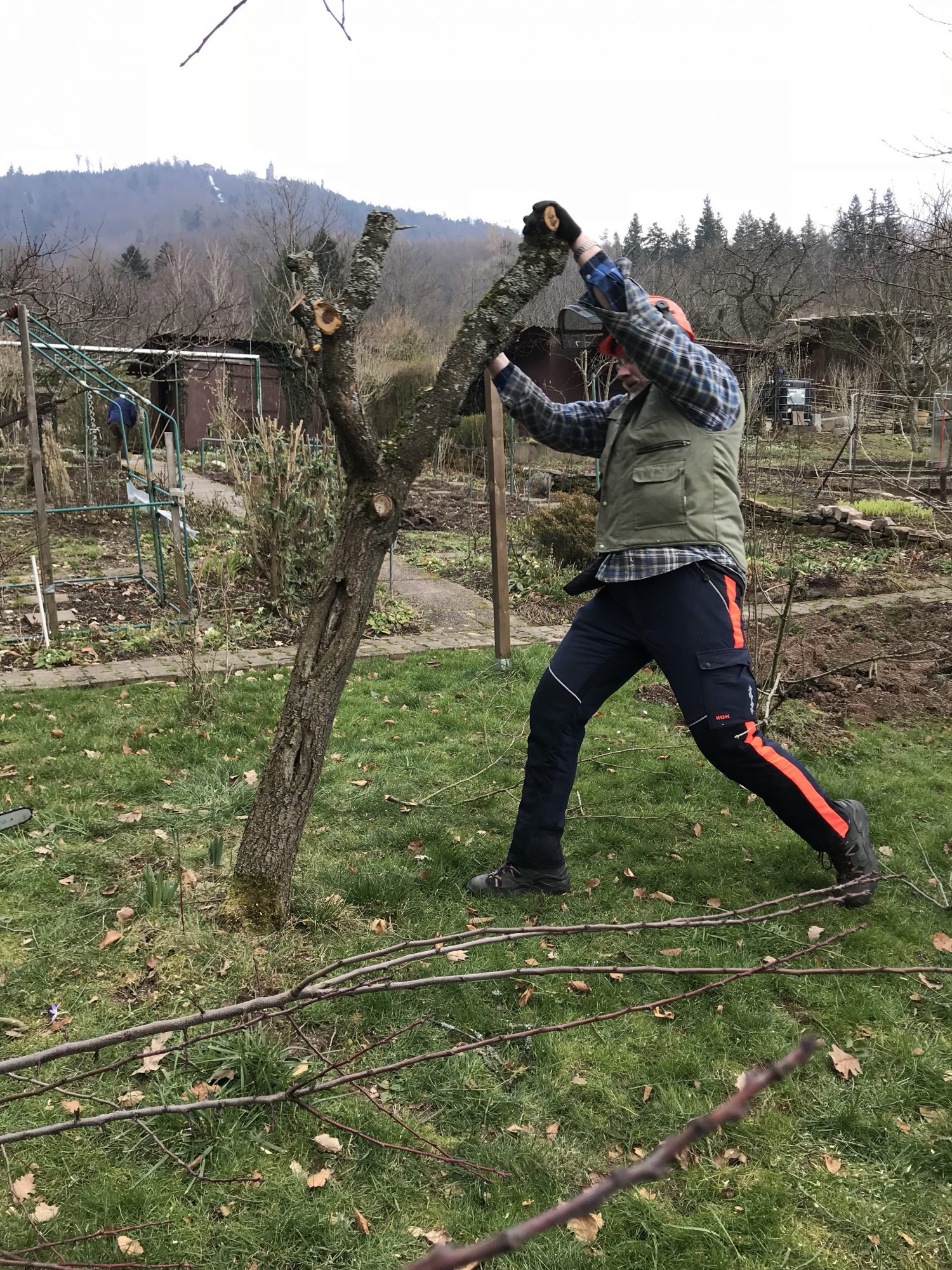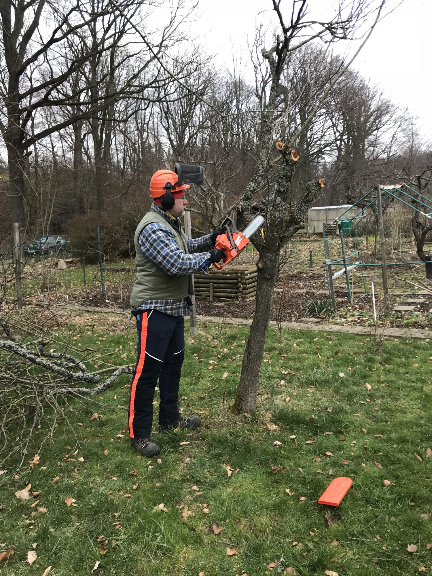 Alles steht gerade im Zeichen des Schnittes – Im Zeichen des Obstbaumschnittes. Wobei wir zuerst einmal radikal einen alten Pflaumenbaum fällen im GartenGarten. Dieser Baum hatte Anfangs noch einen Partner. Der musste aber bald von uns gefällt werden. Nun war der zweite und leider letzte Pflaumenbaum dran. Seit 2014 hatte er keine Früchte mehr getragen und er war bereits voll mit Baumpilzen.