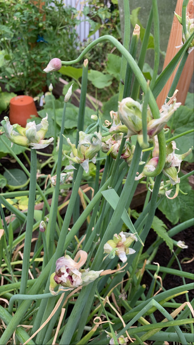 Im Frühsommer zeigen sich die ersten, zartrosa Brutzwiebelchen. Sie erfreuen mich dann mit ihrer lieblich, bizarren Schönheit. In dieser Phase werden die noch nicht verholzten Halme geerntet und wie Frühlingszwiebeln verwendet. Ich verwende sie gerne in meinen bunten Frühlingssalaten mit Rucola, Radieschen und Spargelsalat. Das diese Zwiebel Sorte rund ums Jahr verwendet werden kann ist ein großer Vorteil. Allerdings bin ich mir nicht sicher, ob es wirklich eine hier heimische Sorte ist. Egal, die Luftzwiebel, wie sie auch genannt werden, dürfen sich hier bei mir hemmungslos vermehren. Was sie auch ohne großen Ansprüche erledigen. Das Schwierigste dürfte sein die Brutzwiebeln zu erhalten, wenn man diese Zwiebel im Garten haben möchte. Wobei, inzwischen ist es bestimmt etwas einfacher.