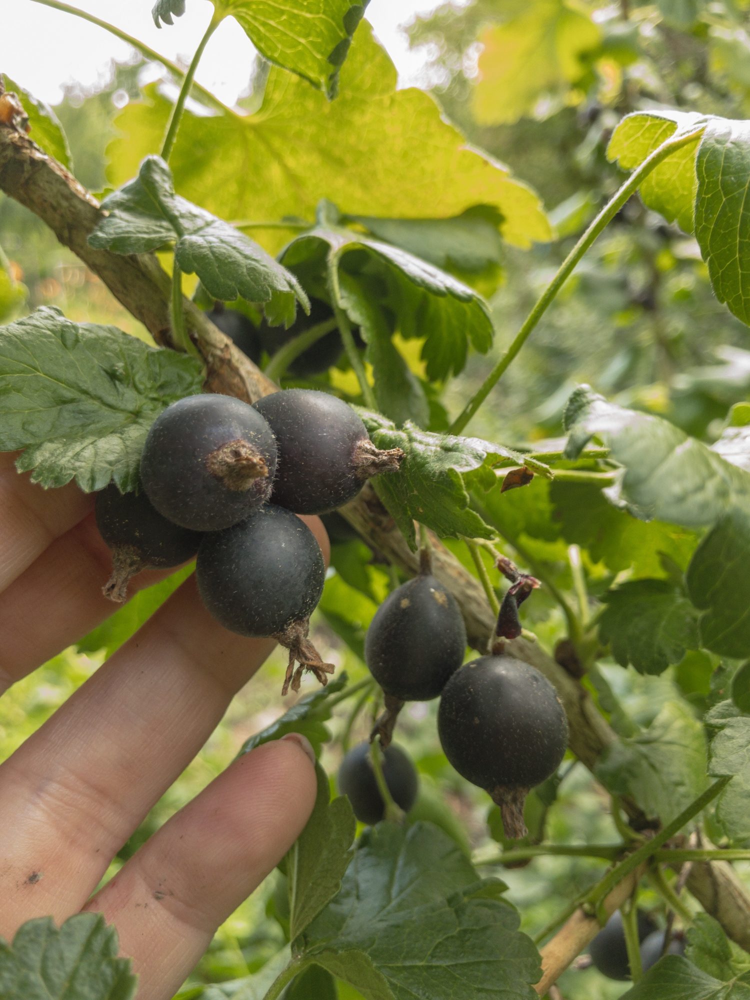 Im Juni ist im Garten die Beerenzeit. Die ganzen Stöcke im oberen Teil des Gartens tragen reife Frücht. Neben Himbeeren und Johannisbeeren sind das vor allem die Jostabeeren. Diese Beere ist eine Kreuzung aus schwarzen Johannisbeeren und der Stachelbeere. Sie hat einen ganz speziellen Geschmack, welcher mich an Wachholderbeeren erinnert.