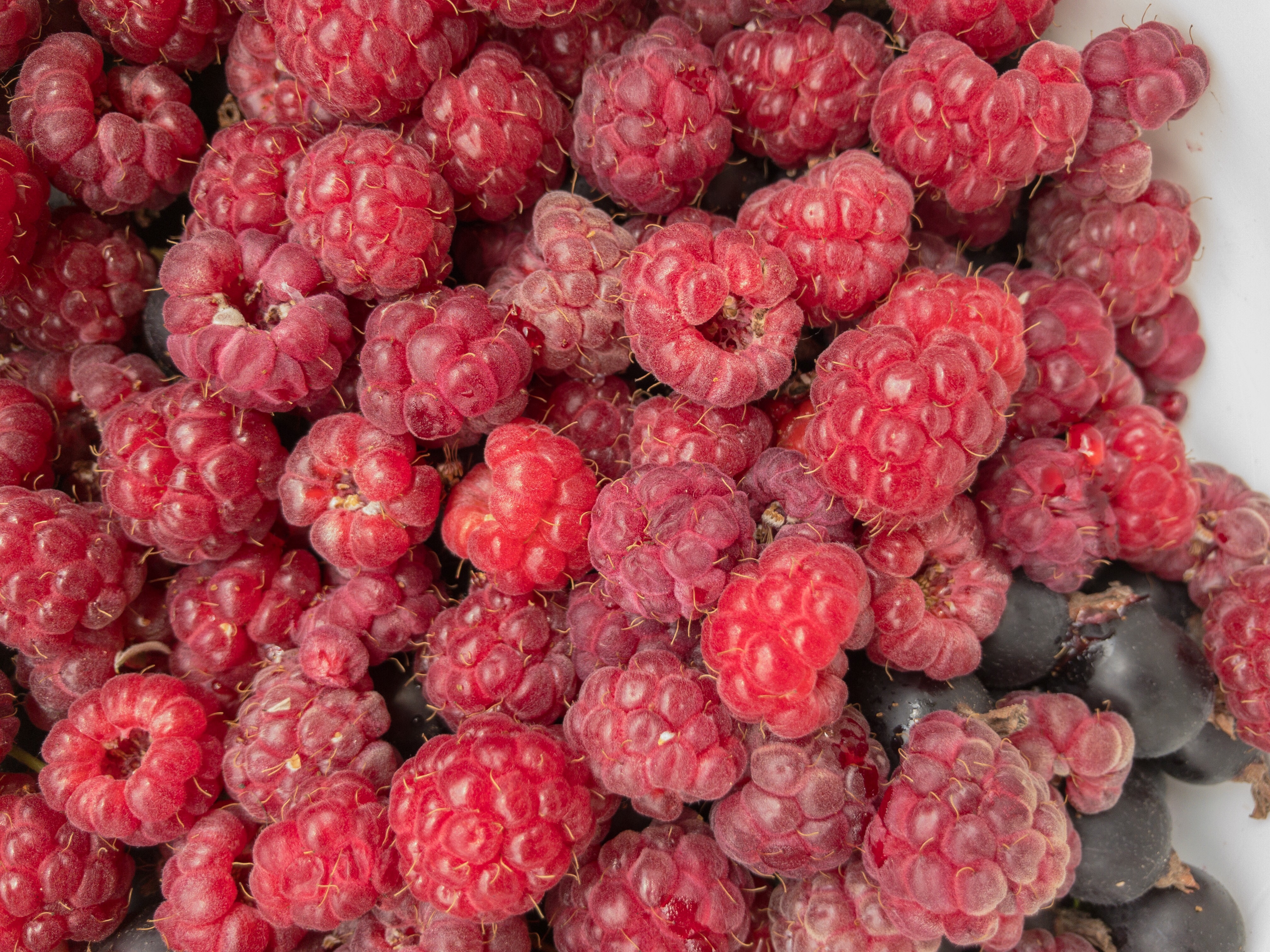 Dann sind da noch die Himbeeren. Zur Zeit sind die Sommer Himbeeren reif. Diese Stöcke sind ebenfalls Erbstücke von den vorherigen Pächtern. Ich selbst würde mir keine Sommer Himbeeren mehr kaufen. Sie sind wesentlich empfindlicher und lange nicht so ertragreich wie die Herbst Himbeeren. Die etwas süßlichere Geschmacksnote macht die Nachteile der Sommer Himbeere nicht wirklich wett. Aber natürlich kommen auch sie in den Cassis, runden sie mit ihrem lieblichen Geschmack das Cassis ab. Nur mit Zucker und dem Geliermittel entsteht so etwas ganz Besonderes. Gewürze sind da nicht mehr nötig.