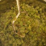 - Die Trauben zupfe ich alle feinsäuberlich vom Stiel. Kaputte Trauben werden aussortiert. Die Trauben aufkochen, bis die Haut aufplatzt. Mit einem Kartoffelstampfer die Traubensuppe kräftig durcharbeiten. Keinen Mixer verwenden!!