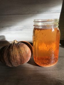 Der Apfelessig muss jetzt noch eine Weile reifen. Perfekt hierfür wäre ein spezieller Tontopf. Aber den muss ich mir erst noch zusammen sparen. So lange tut es eine Glasflasche. Noch habe ich nicht den besten Apfelessig der Welt, aber ich bin auf dem Weg. 🙂