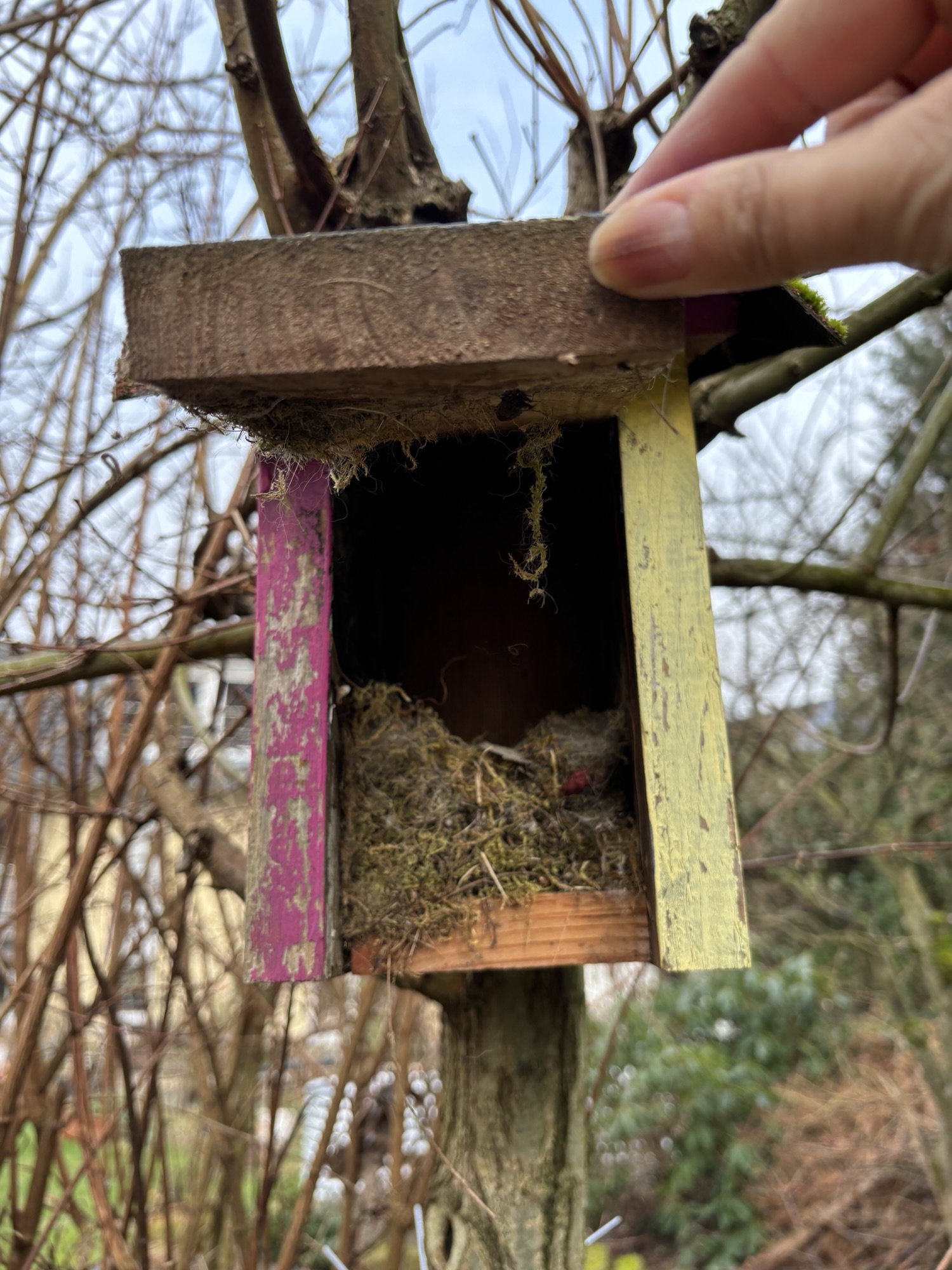 Mit dem Bau der Nistkästen ist es allerdings nicht getan. Jedes Jahr müssen die Nistkästen im zeitigen Frühjahr beräumt werden. Dabei immer Handschuhe und Mundschutz tragen.