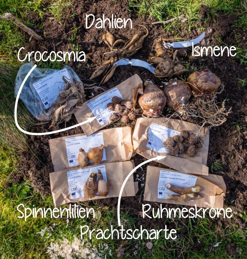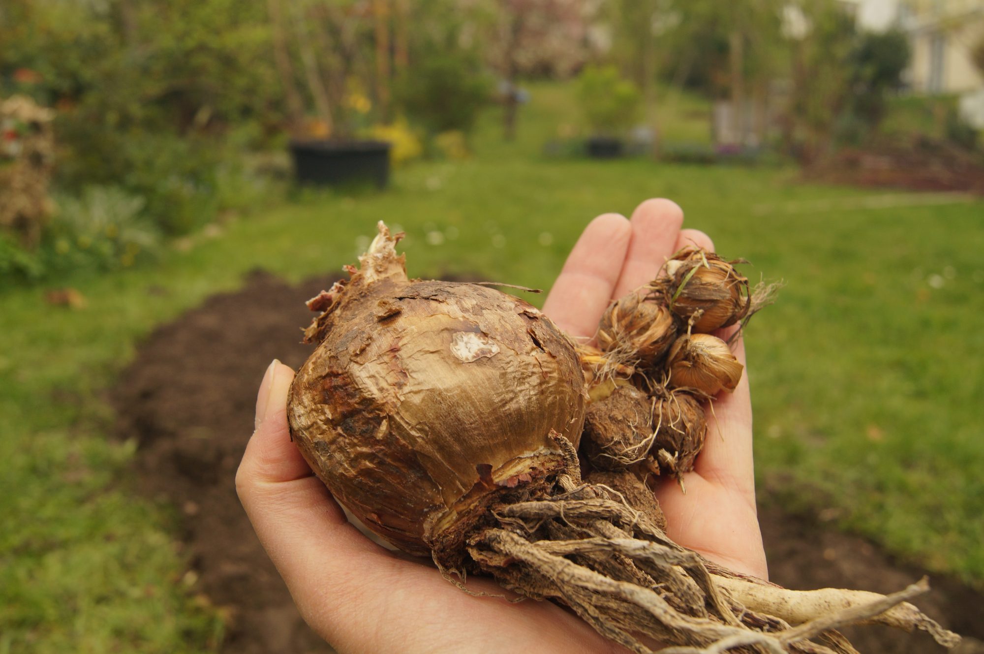 Zuerst kommen die Knollen, Zwiebeln und Wurzeln in den Boden.