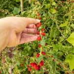 Ein weiteres Rezept mit Erdbeerspinat ist ganz simpel. Die Körner in den roten „Erdbeeren“ schmecken besser, wenn sie kurz angebraten werden. Deshalb mache ich gerne eine Handvoll der Früchte in ein Rührei oder Omlett mit hinein. Dazu zuerst die roten Früchte in heißem Öl kurz anbraten. Dann die – nach Belieben gewürzte – Eimasse hinzu geben. Eine leckere Eiweißbeilage mit Mehrwert.