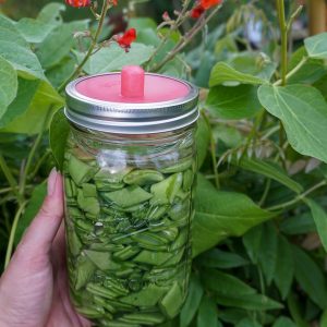 Und ja, ich erhitze die Gläser, nach dem die Stangenbohnen den für uns passenden Grad an Fermentierung absolviert haben. So werden die Schnippelbohnen länger haltbar.
