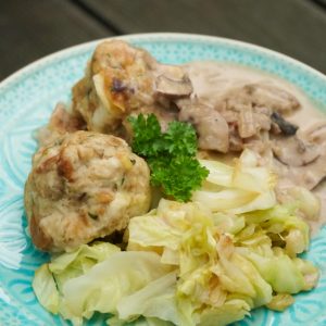 Zuhause haben wir dann eine Resteverwertung gestartet. Hier sammeln sich immer wieder alte Weckle / Semmel / Brötchen / Schrippen … So richtig im Griff haben wir es nicht, immer alle aufzuessen, so lange sie noch nicht hart sind. Damit wir sie nicht wegschmeißen müssen, sind wir dazu über gegangen ein altes, leckeres Rezept zu reaktivieren: Semmelknödeln. Dazu gibt es den Spitzkohl als „Fleckerl“ und einer Pilzsoße. Klar, die Brötchen sollten nicht schimmeln – schimmelige Brötchen unbedingt wegschmeißen.