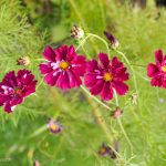 In den Blumenbeeten, welche ich im Frühjahr neu angelegt habe, ist jetzt der Blühhöhepunkt erreicht. („Blumenbeet im Rasen“) Endlich zeigen sich auch die Schmuckkörbchen / Cosmea. Diese grazilen Schönheiten haben mich schon lange in den Bann gezogen.