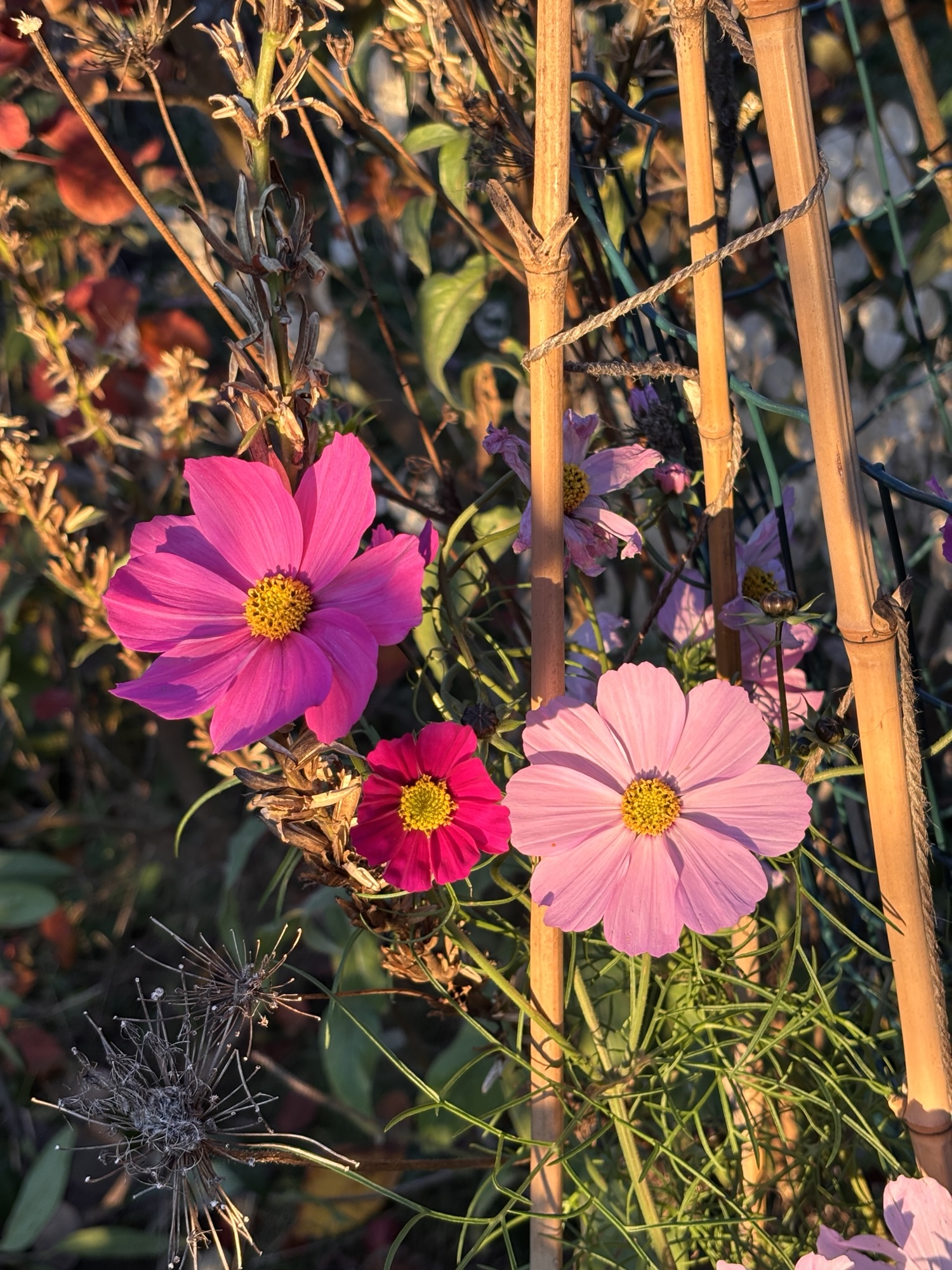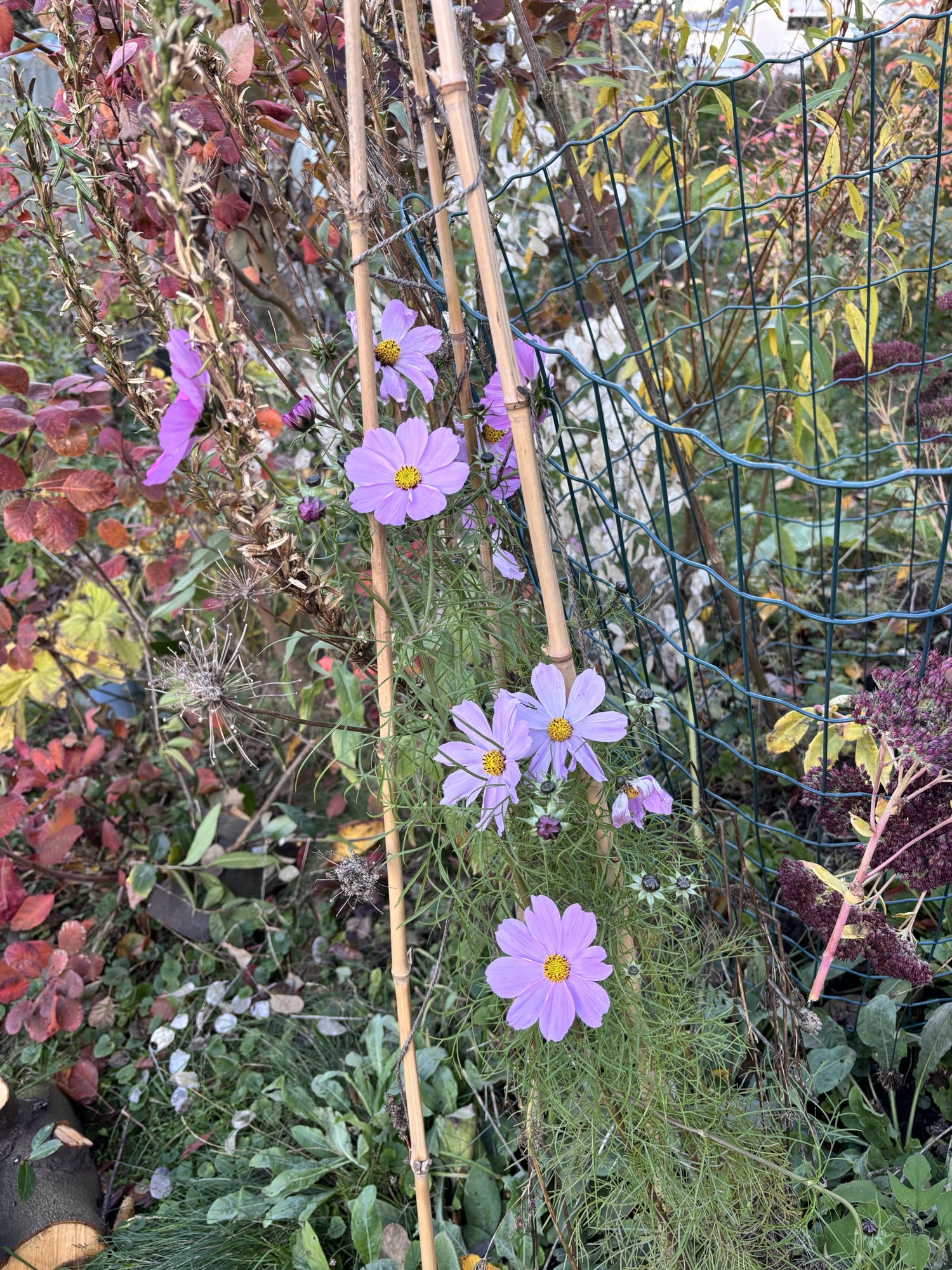 Die meisten Cosmos-Sorten, die wir im Sommer sehen, sind frühblühende Züchtungen. Ursprünglich sind diese Schönheiten nämlich echte Herbstblüher! Sie blühen normalerweise erst ab Mitte September. Ihre wahre Bestimmung – das volle Leuchten in Pink und Rosé – zeigen sie erst, wenn die Tage kürzer werden. Deshalb sind sie auch im November so unschlagbar robust und farbintensiv. Weil das ihre eigentliche Hochsaison ist. Wenn der erste Frost sich Zeit lässt. Respekt vor dieser Herbst-Power!