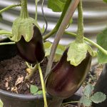 Bei „Luiza“ und „Tsakoniki“ sind die Früchte etwas kleiner, als an den Pflanzen aus dem Gemüsegarten. Aber sie sind genauso lecker. Alle drei Sorten habe ich aus Samen selbst gezogen. Die „Chinese Long“ wächst übrigens hier oben im 30er Pflanzkübel besser als unten im Beet. Ich vermute, da sie noch wärmebedürftiger als die anderen Auberginen Pflanzen ist. Auberginen Pflanzen lieben warme Wurzeln.