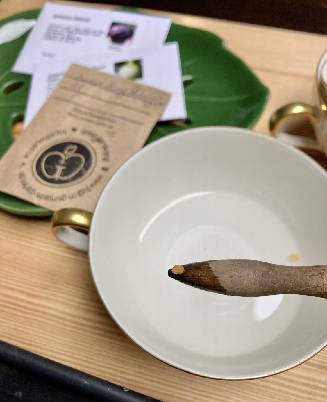 Vorgezogen habe ich die Auberginen Setzlinge bereits ab Ende Februar. Sie sind mit den Tomatillo die erste Aussaat eines neuen Gartenjahres. Bis Vor der Aussaat haben die Samen für 6 Stunden in Milch gebadet. Das weicht die Samenschale etwas auf. Trotzdem kann es bis zu 6 Wochen dauern, bis sich die Pflänzchen zeigen.