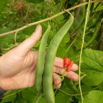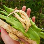 Bohnen, die aufbewahrt werden sollen, lasse ich gerne hängen bis die Hülsen trocken sind. Das funktioniert aber nur, wenn auch das Wetter trocken bleibt. Bei Regen fangen die Hülsen leicht an zu Schimmeln. Daher die Hülsen besser vor einer Regenperiode ernten.