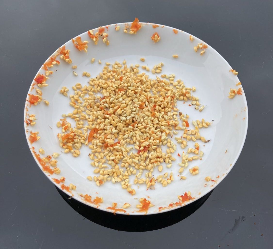 Die Kerne werden dann nochmal gründlich in einem Sieb gewaschen, um auch wirklich alle Härchen zu entfernen. Die Hagebutten sind recht groß und dadurch auch die Kerne. Daher hielt sich die Fummelei einigermaßen in Grenzen.