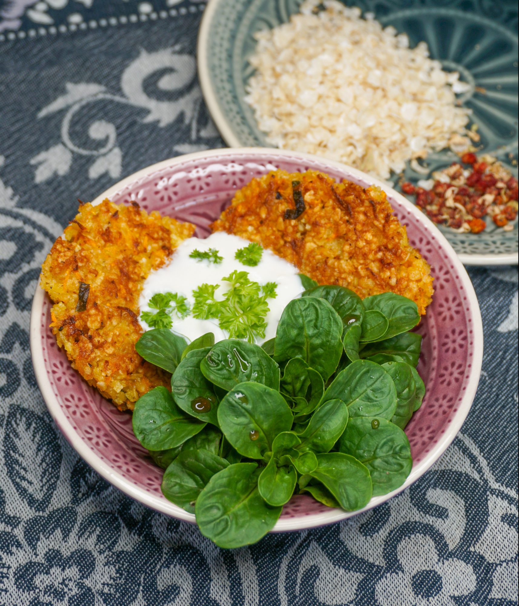 Herausgekommen ist eine wirklich leckere, vegetarische Variante eines Brätlings. Selbst die Kids haben sie mit Genuss verspeist. Versuch also gelungen. Für die Erwachsenen gab es neben dem Kräuterjoghurt noch einen frisch geernteten Feldsalat. Der legt bei den etwas wärmeren Wintertemperaturen der letzten Tage endlich mal richtig los.