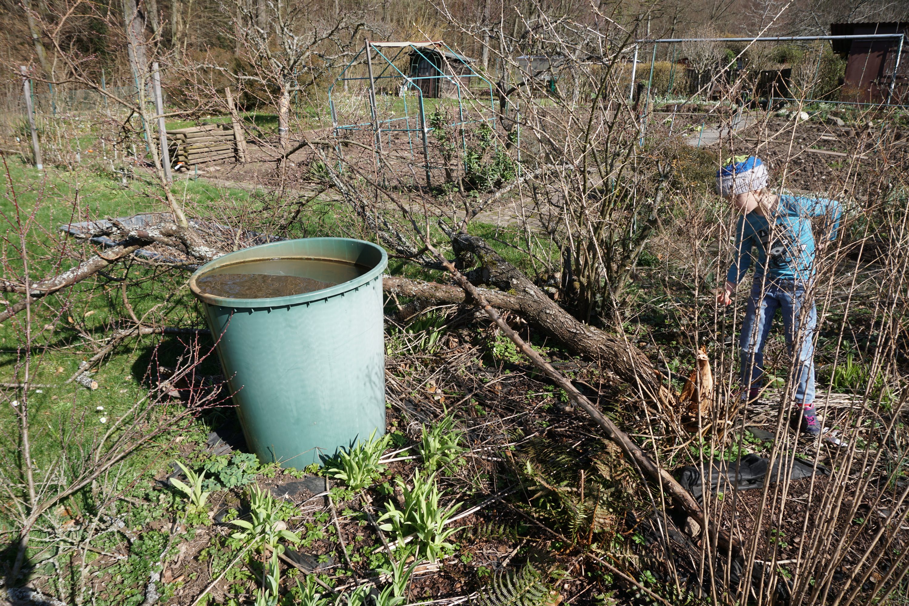 Den Stamm und die dickeren Äste habe ich bereits zerteilt. Sie werde ich als Totholzhaufen aufschichten und so für die Insekten eine Heimstatt bauen. Da der Kleingarten Vorstand mit nachhaltigem Gärtnern so gar nichts am Hut hat, allerdings im Hausgarten. Auch die meisten Zweige hole ich in den Hausgarten. Ich lege sie für die nächsten Wochen über die frisch angesäten Blumenbeete. Sokann sich die freche Amsel nicht immer an den Blumensamen bedienen.