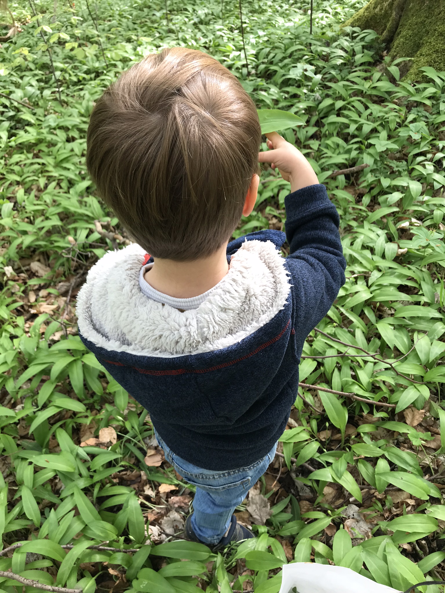 Das Pflücken der Bärlauchblätter ist in unserer Familie ein Generationsübergreifendes Ritual, welches uns einmal im Jahr in den Wald treibt. Vor 40 Jahren bin ich mit meinem Vater gebückt durch das Waldstück gegangen, in dem ich heute mit unseren Jüngsten unterwegs bin. Immer an der selben Stelle und immer nur soviel, wie wir selber verbrauchen über das Jahr.