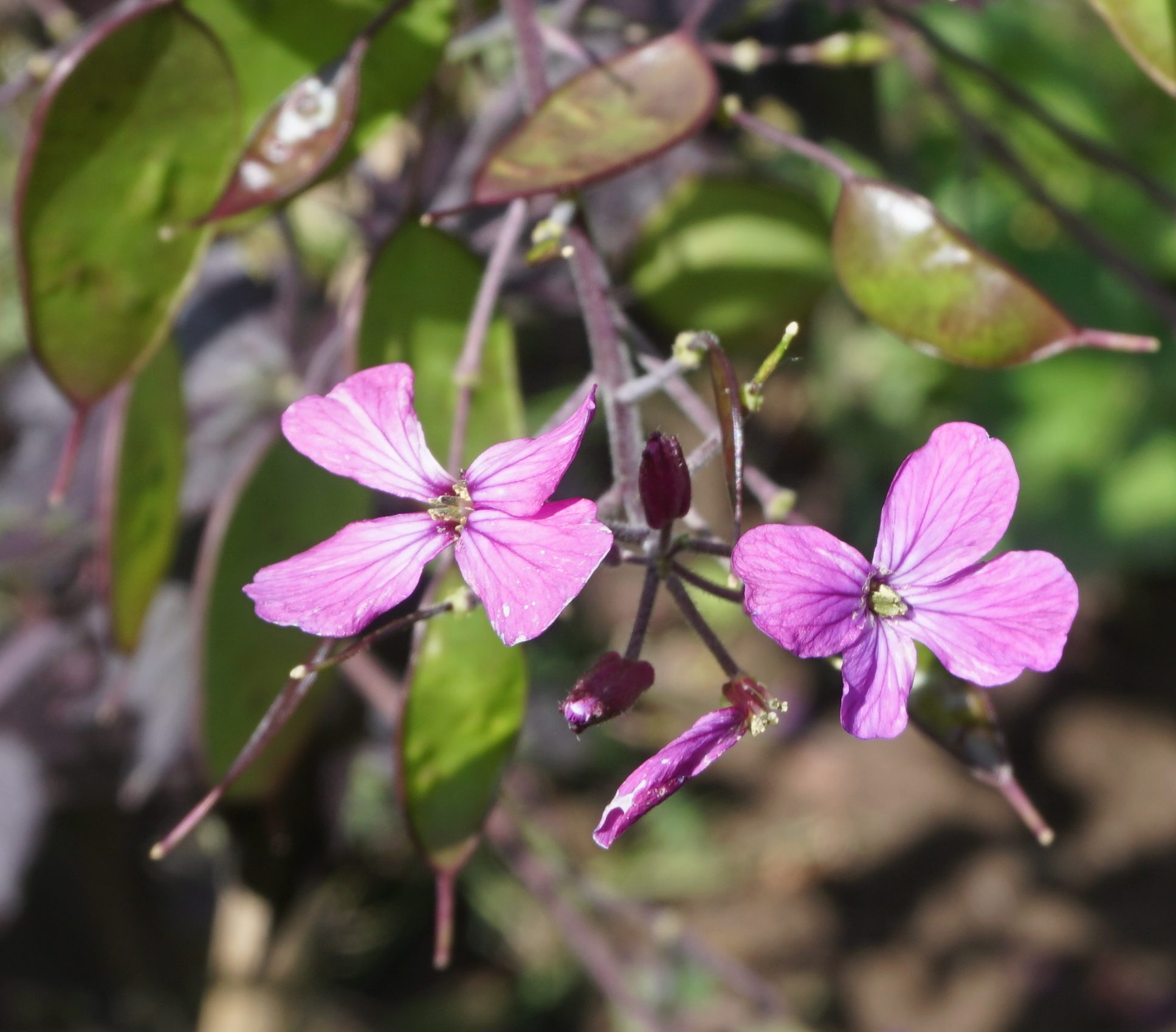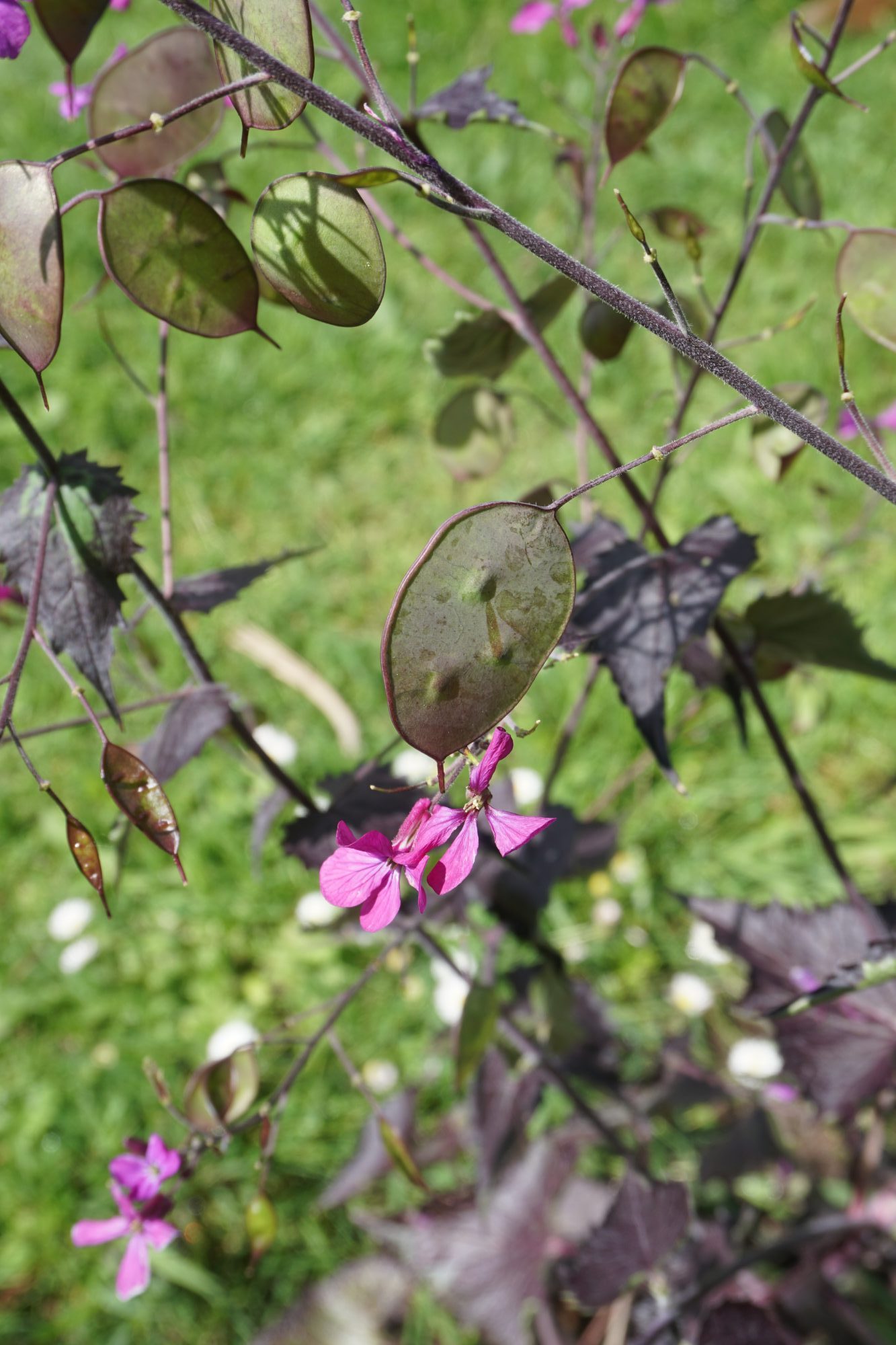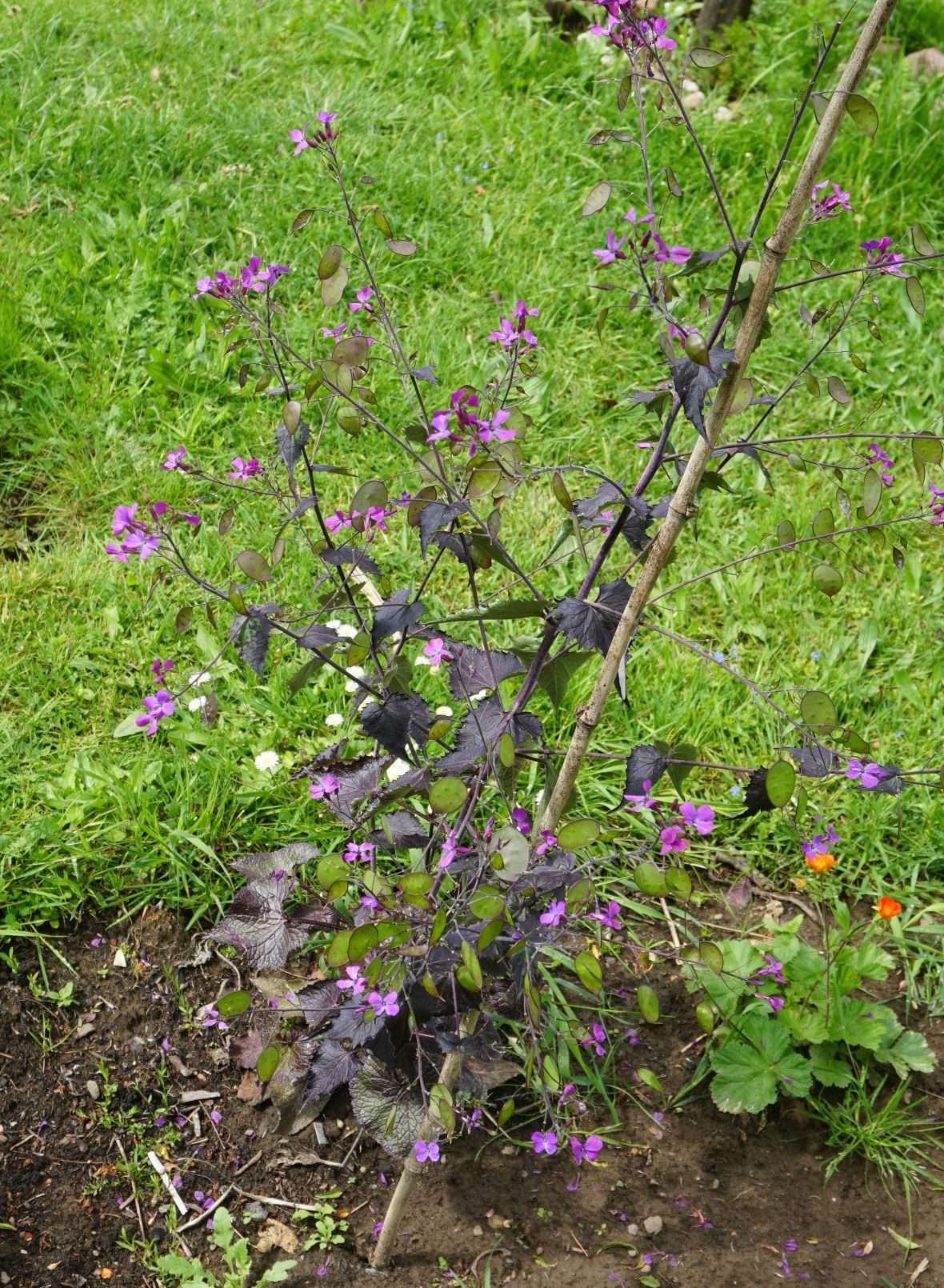 Das purpurfarbene Silberblatt „Chedglow“ stammt ebenfalls aus England. Ich habe die Pflanze im Frühjahr 2019 erworben und gepflanzt. Seit Anfang April blüht sie nun mit kräftig pinken Blüten. Die ersten Ansätze für die „Samenblätter“ zeigen sich auch bereits. Wirklich ein prächtiges Silberblatt oder sollte ich besser sagen „Purpurblatt“, mit den purpurfarbenen Blättern. Silberblatt ist in der Regel zweijährig, wobei sich die Blüten und Schötchen erst im zweiten Jahr zeigen.