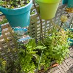 Spannend finde ich, dass auch beim Gärtnern in Container und Pflanzkübeln die Prinzipien der Permakultur Anwendung finden können. Wenn ich mir meine Pflanzcontainer anschaue, findet sich in manchen schon mehrjähriges oder sich selbst ausgesamtes Gemüse, wie den Sellerie und die Litschitomate. Die Stangensellerie Mutterpflanze hat vorletztes Jahr in einem Pflanzkübel überwintert und uns fleißig Stangen geliefert. Im letzten Sommer hat sie dann geblüht und Samen gebildet. Offensichtlich habe ich nicht alle Samen abgesammelt, wie an den vielen kleinen Pflänzchen zu erkennen ist.