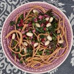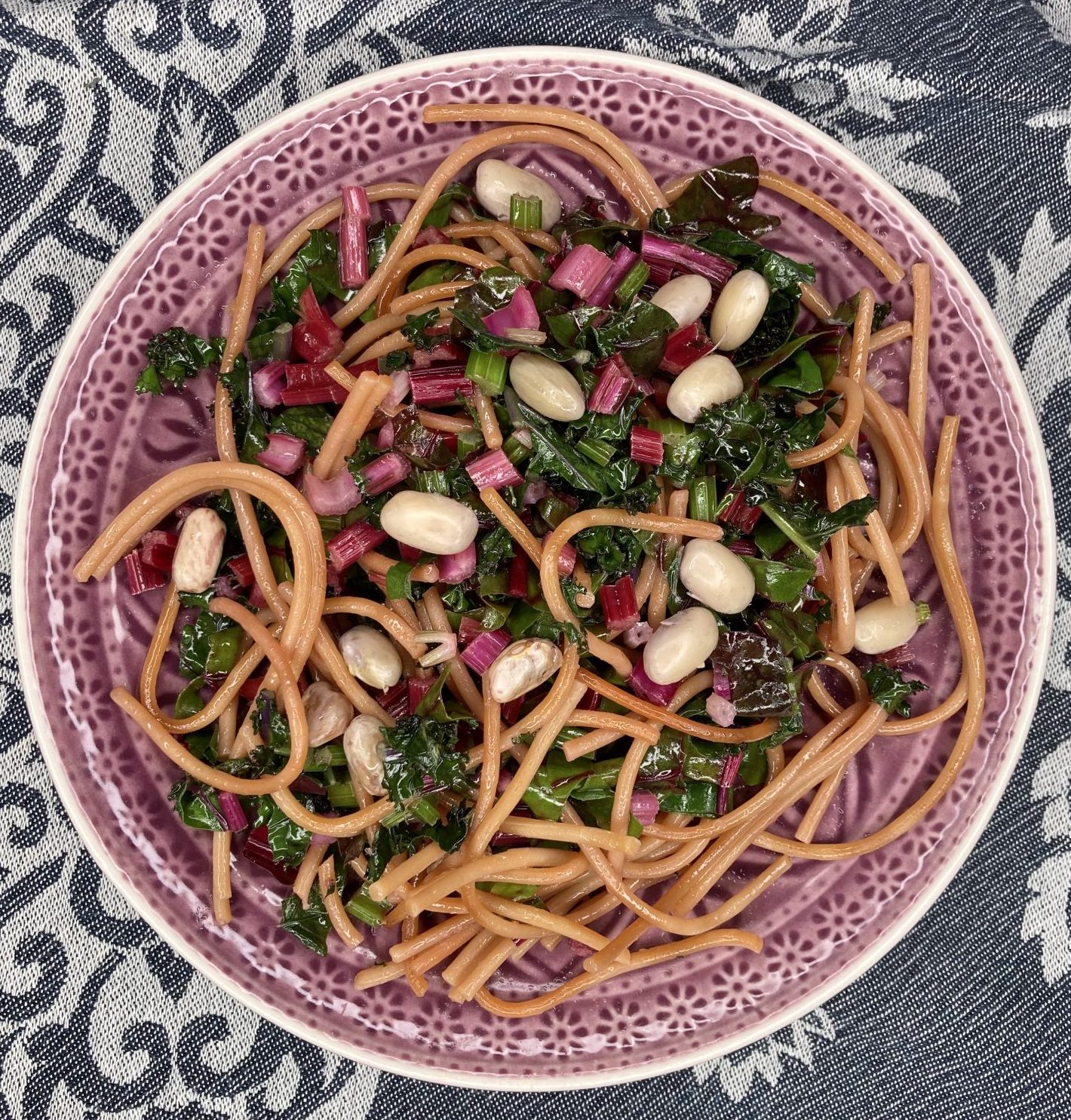 Vor kurzem habe ich die roten Linsennudeln für mich entdeckt. Zum Glück habe ich keine Probleme mit Gluten. Aber ich probiere gerne etwas Neues aus und sie schmecken mir richtig gut. Sie eignen sich wirklich gut für herzhafte Nudelpfannen oder warme Nudelsalate mit fast allen Gemüsesorten. Fast zu Schade für eine „einfache“ Tomatensoße.