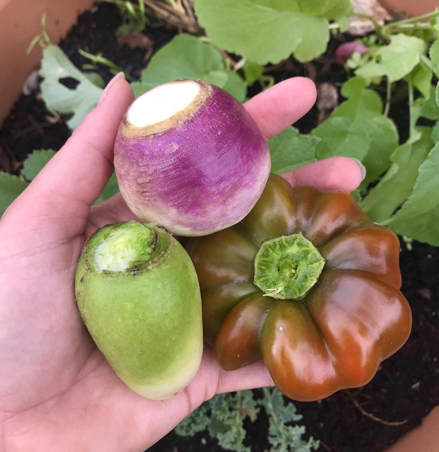 Bis auf den Rettich habe ich alle Gemüsesorten kurz angedünstet. Das steigert noch die Aromen. Die gleiche Gewürzkombi habe ich bereits mit frisch abgekochten Bohnenkernen und leicht angedünstetem Mangold probiert. Mmmhh, lecker. Mal überlegen, welche Gemüsesorten ich noch verwenden könnte. Immerhin wächst noch so einiges im Beet. Stangensellerie, Pak Choi und Kohl halten auch Frostgrade ganz gut aus. Ich glaube, die Kombi probiere ich als nächstes aus.