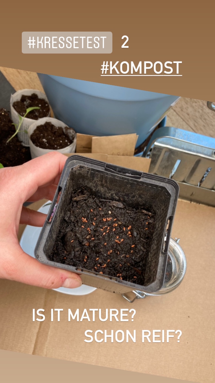 Für den anderen Reife Test kann ein ganz normaler Pflanztopf verwendet werden. Es wird das Wachstum der Kresse beobachtet, wie sie sich entwickelt. Die Behältnisse an einen hellen Ort stellen und 7-10 Tage warten. Wachsen die Kresse Keimlinge in sattem Grün und stehen stramm aufrecht, ist der Kompost Einsatzbereit.