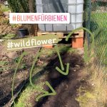 Dazu erst die Grasnarbe abnehmen und überflächlich lockern. Dann kommt bei mir rund 5 cm Blumenerde drauf. So können die Blumen besser wurzeln. Alles gründlich wässern, dann kommt Saatgut einer bunten Blumenmischung auf die Erde. Zum Schluß nochmal dünn Erde darüber gestreut, leicht angedrückt und nochmals gründlich Wässern. So, jetzt können die Insekten direkt vor ihrem Hotel im Sommer die erste Futterstelle anfliegen. Es darf natürlich nicht die einzige Futterstelle – also Blumenwiese – bleiben. In der Saatgutmischung sind Borretsch, Ringelblumen, Kornblumen, Nelken, ungefüllte Tagetes, Lein, Hasenohr, Schafgarbe und Jungfer im Grünen enthalten. Ich säe noch Amaranth und Schmuckkörbchen mit ein fürs Auge. Also schnell noch weitere Blumenbeete ansäen, bevor es bereits wieder zu spät ist.