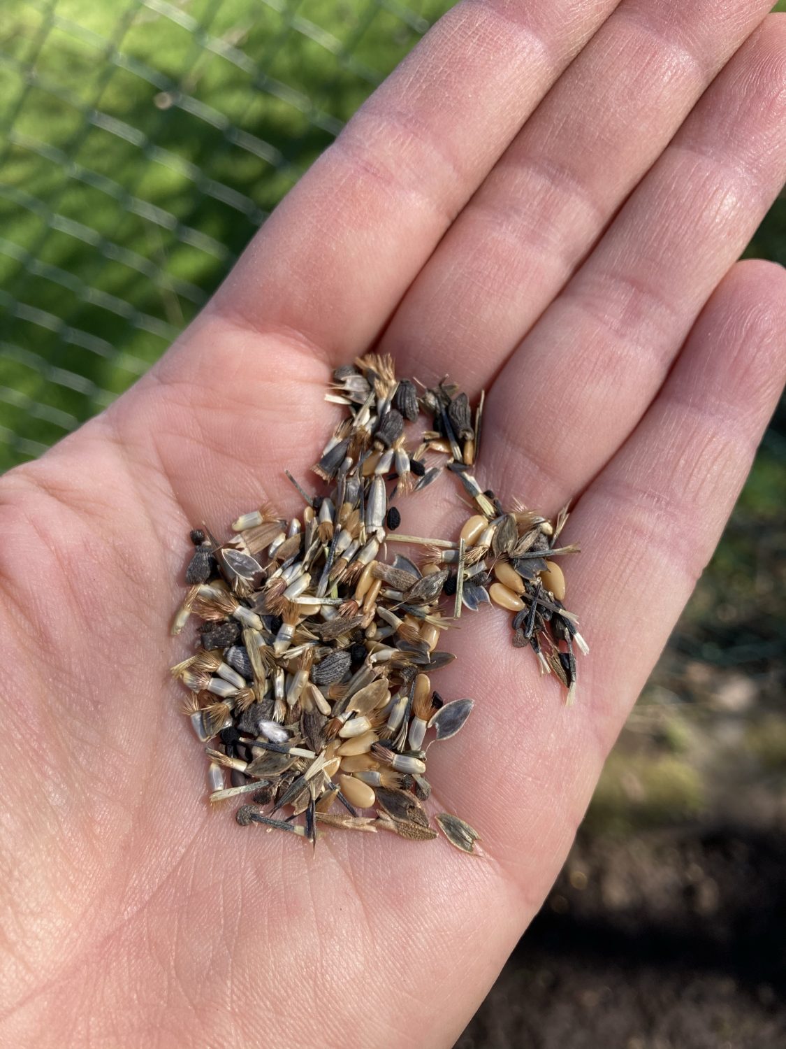 Diese Arbeit ist jetzt so wichtig, da die Zeit der Blumenaussaat ansteht. Alle ein- und zweijährige Blumen versuche ich – auch aus Kostengründen – selber zu ziehen. Die Wenigsten in Töpfen unter Glas, lieber direkt im Blumenbeet. Hierfür eignet sich meiner Erfahrung nach nur ein relativ kurzes Zeitfenster im März. Im Laufe der Jahre hat sich bei mir diese Periode als die Erfolgreichste für Aussaat von einjährige Blumensamen etabliert. Der Boden ist dann bei uns in der Regel aufgetaut, es gibt noch ausreichend Feuchtigkeit. Die Saat geht auf und ist groß genug bis die Trockenheit wieder zuschlägt. Also ranhalten, die Futterweiden für die Insekten müssen angesät werden.