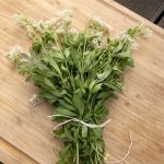 - Waldmeister wenn möglich frisch schneiden. Dabei alle Schnittflächen in eine Richtung legen. Damit sich das Waldmeisteraroma entwickeln kann, muss er zuerst angetrocknet werden. Am einfachsten für eine Stunde in die Sonne legen.